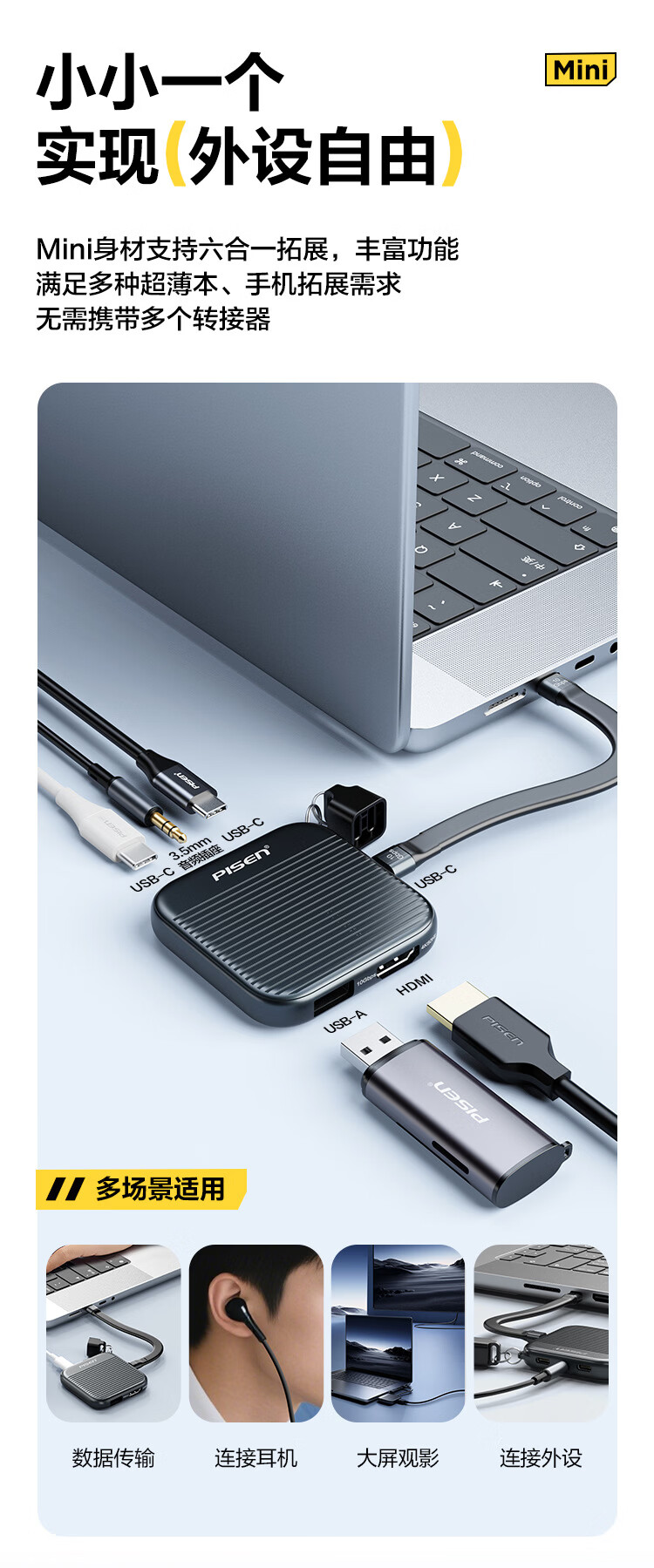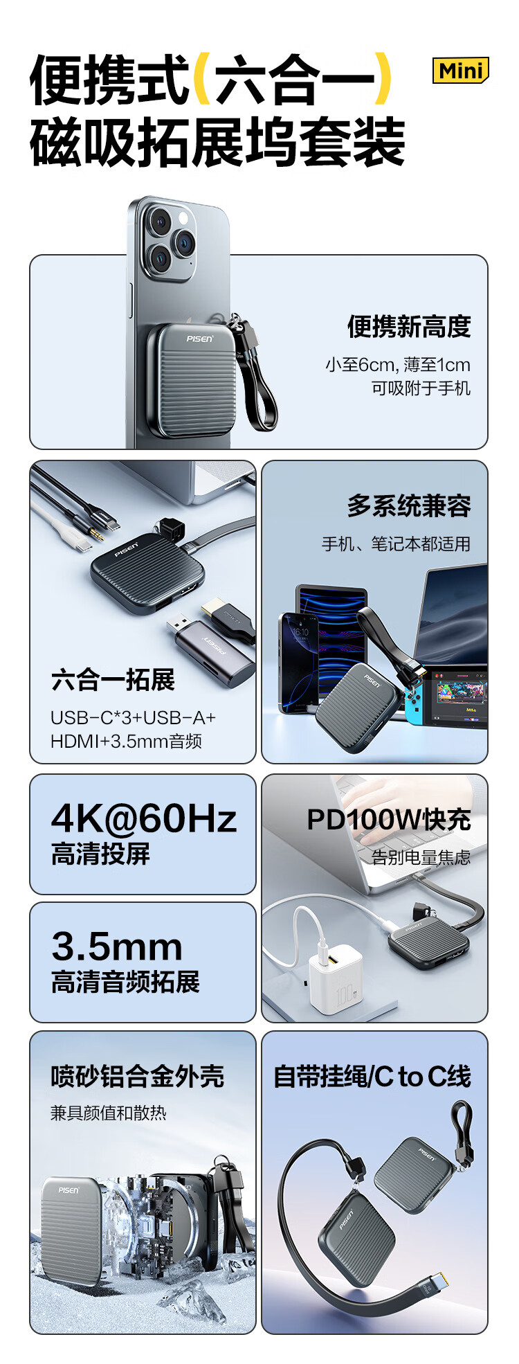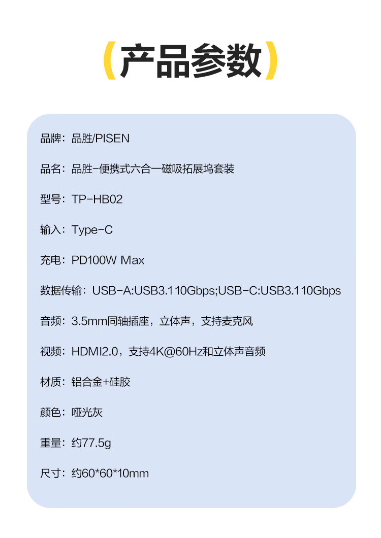 品胜 便携式六合一磁吸拓展坞套装TP-HB02