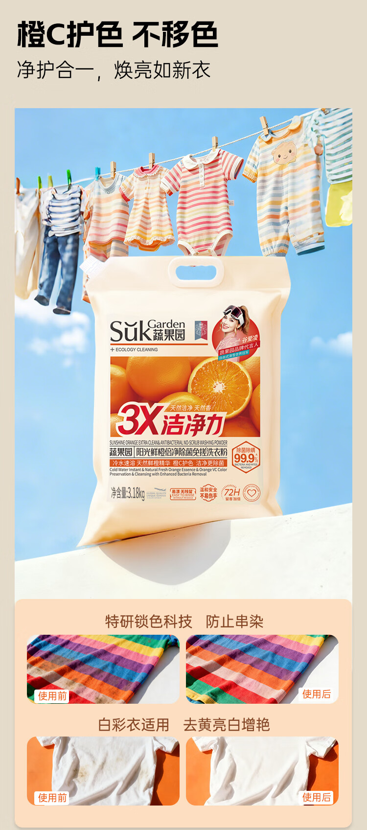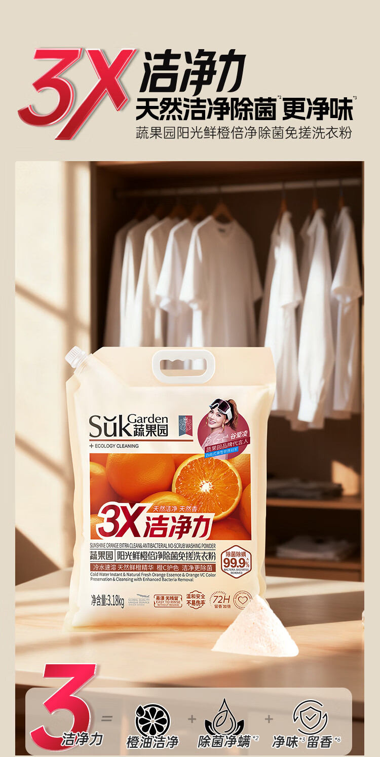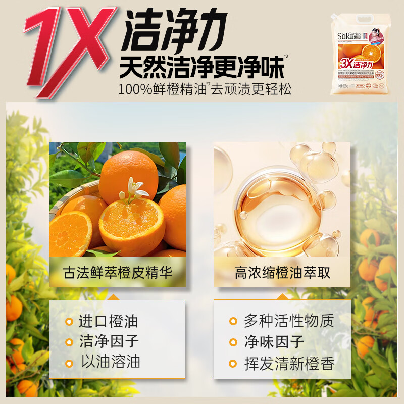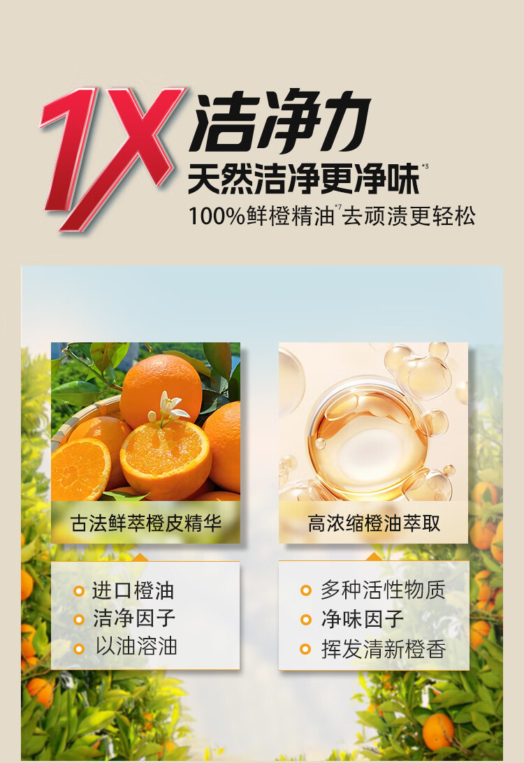 天然橙油精华;橙C配方,护色净味不伤手;72小时留香+去异味