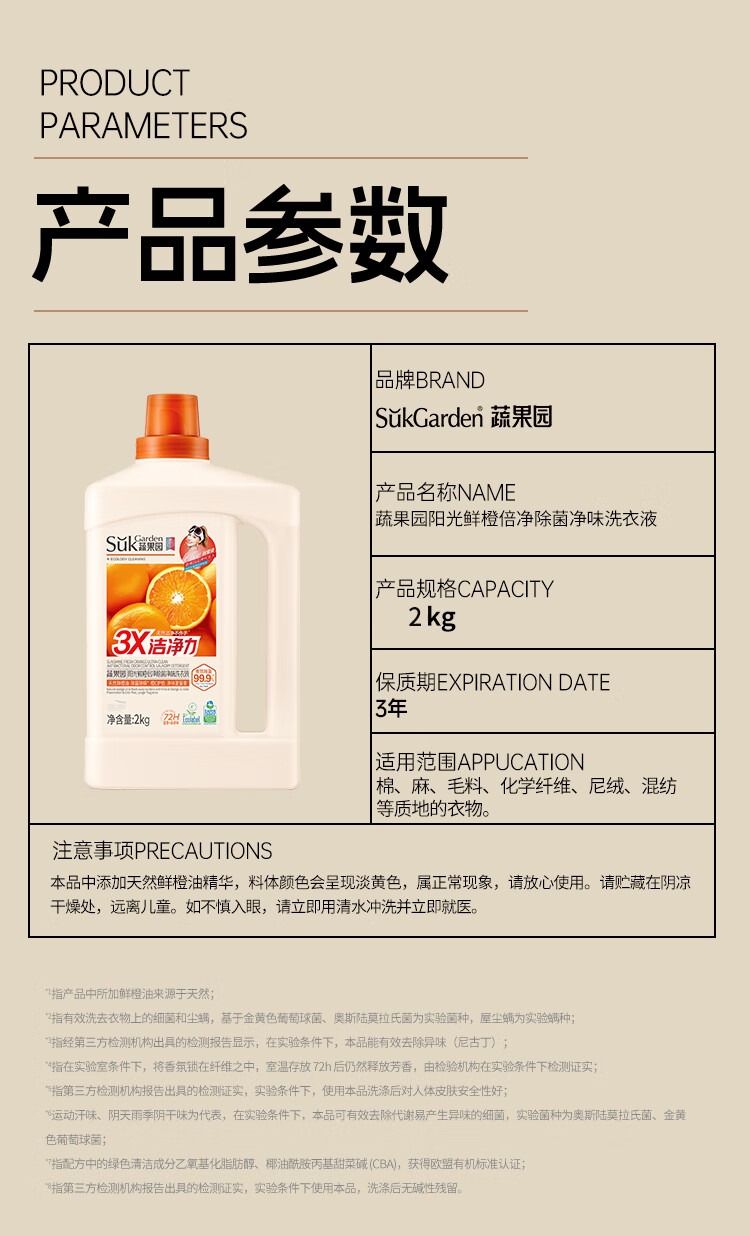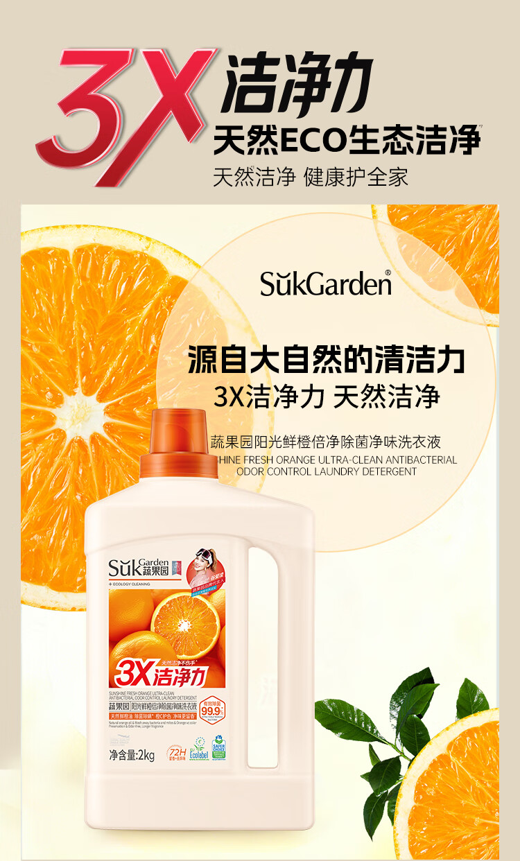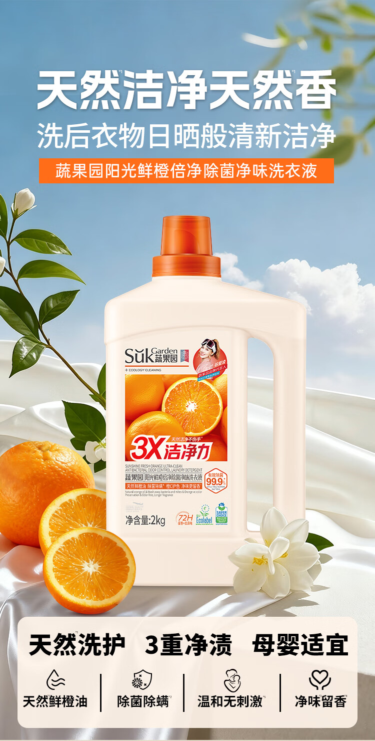 蔬果园 鲜橙倍净除菌净味洗衣液2kgSGY0920