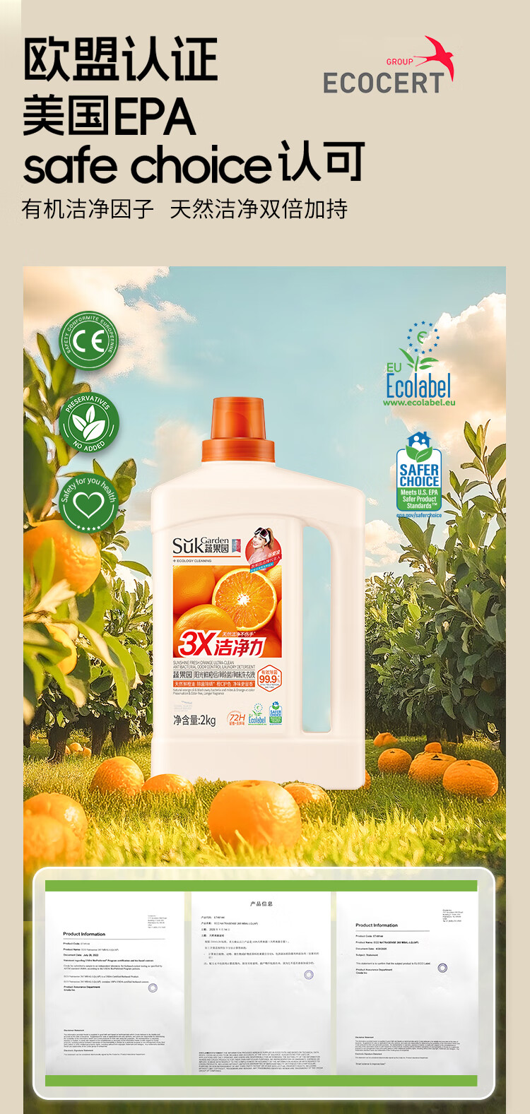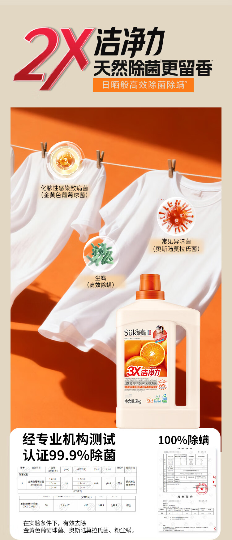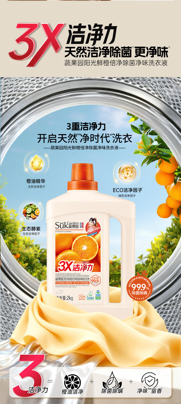 蔬果园 鲜橙倍净除菌净味洗衣液2kgSGY0920