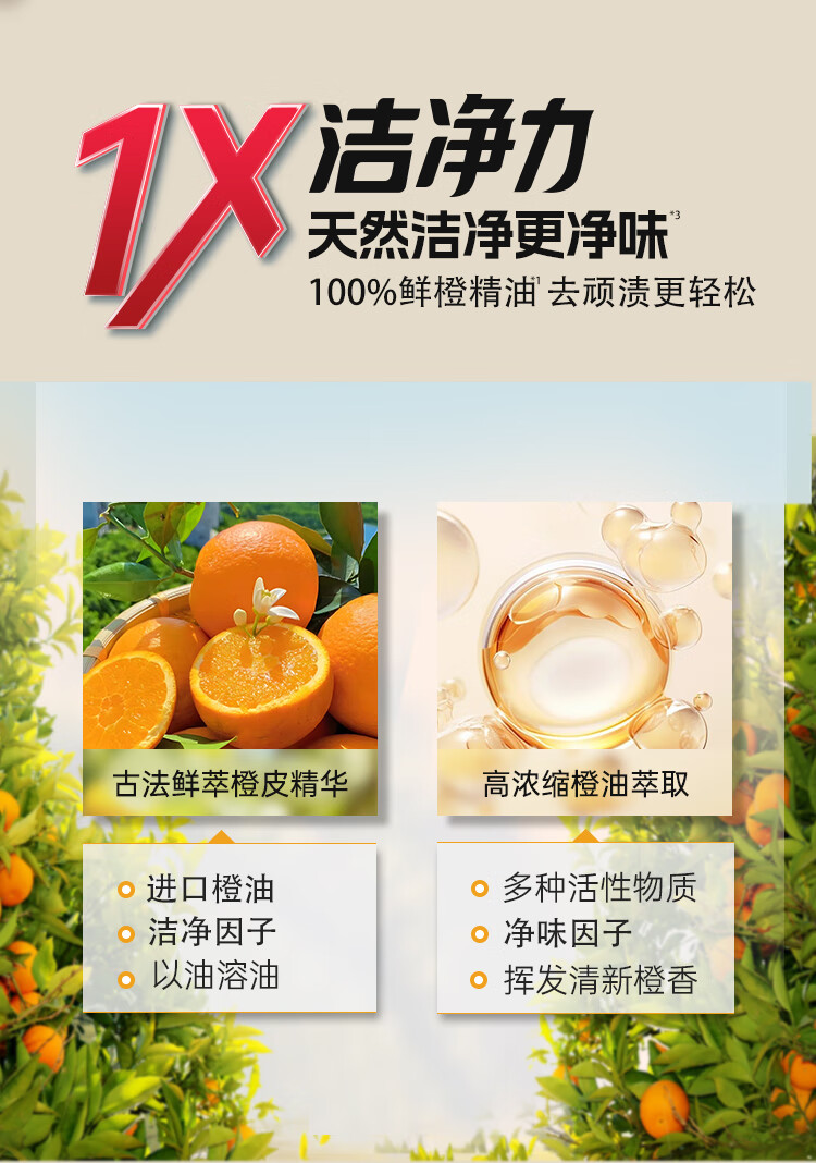 天然橙油精华;橙C配方,护色净味不伤手;72小时留香+去异味