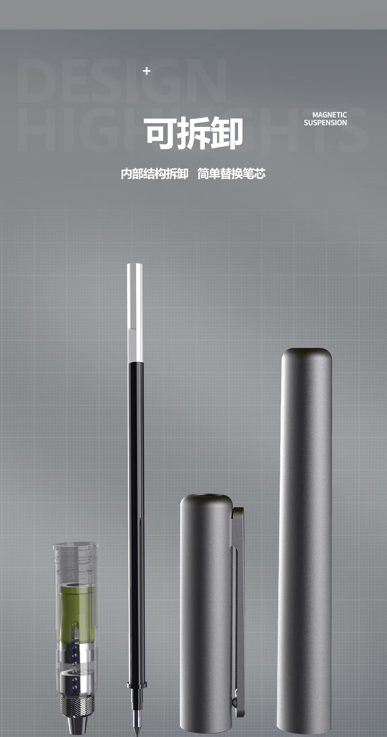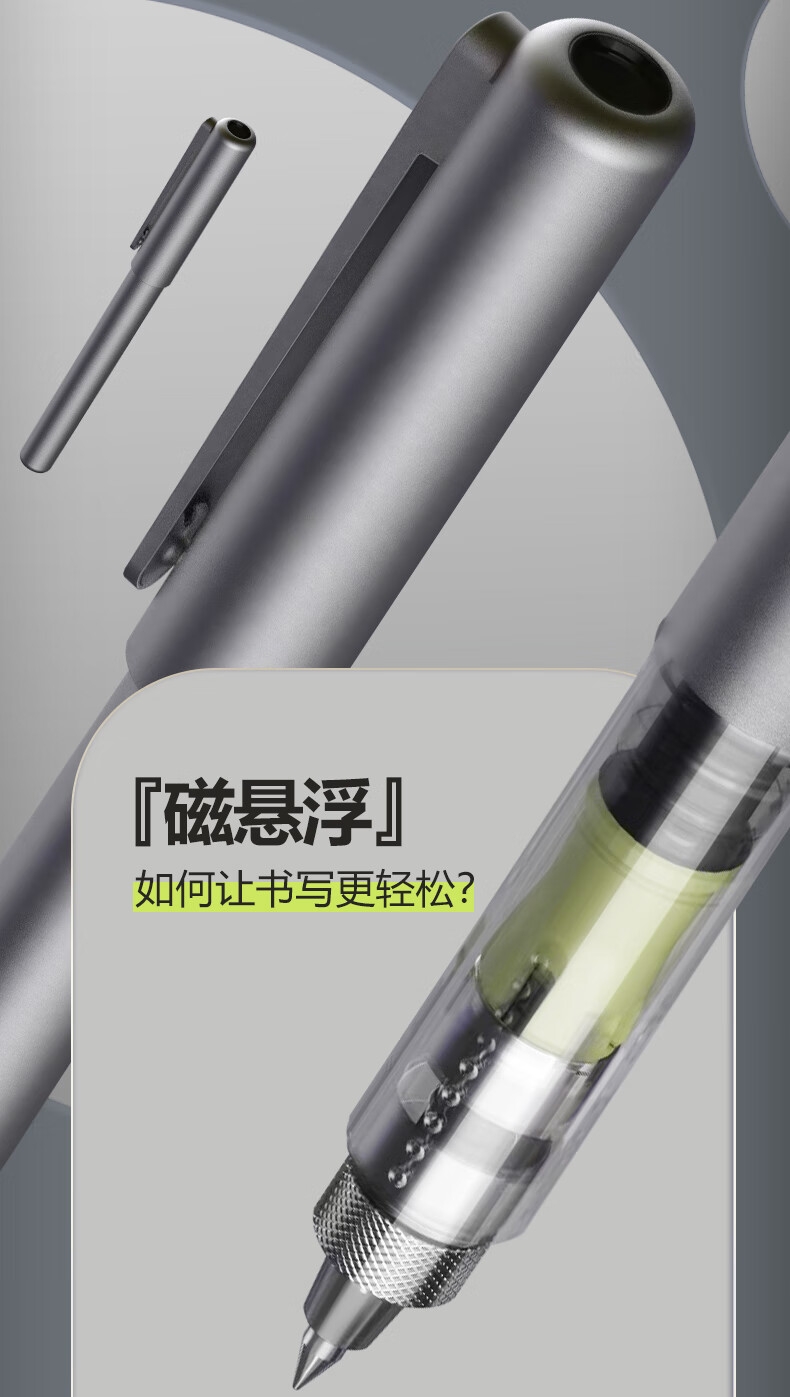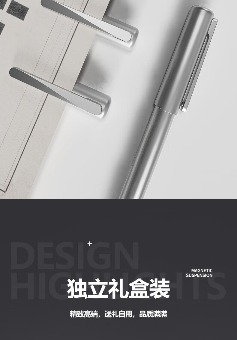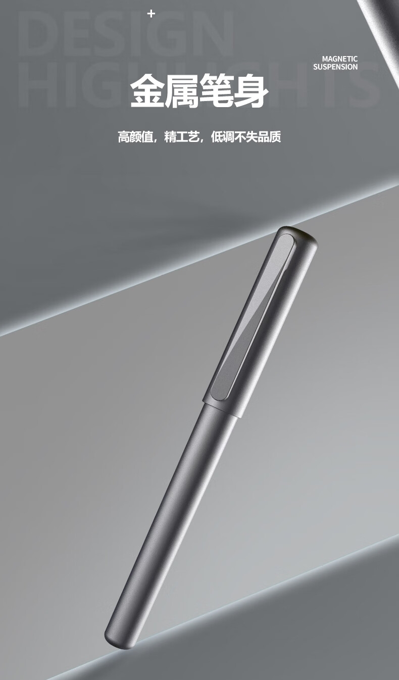 高颜值,精工艺,低调不失品质;低重心设计,放置稳固,书写更稳定;内置磁石磁力书写省力