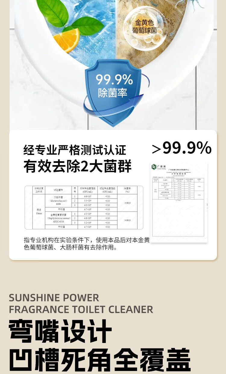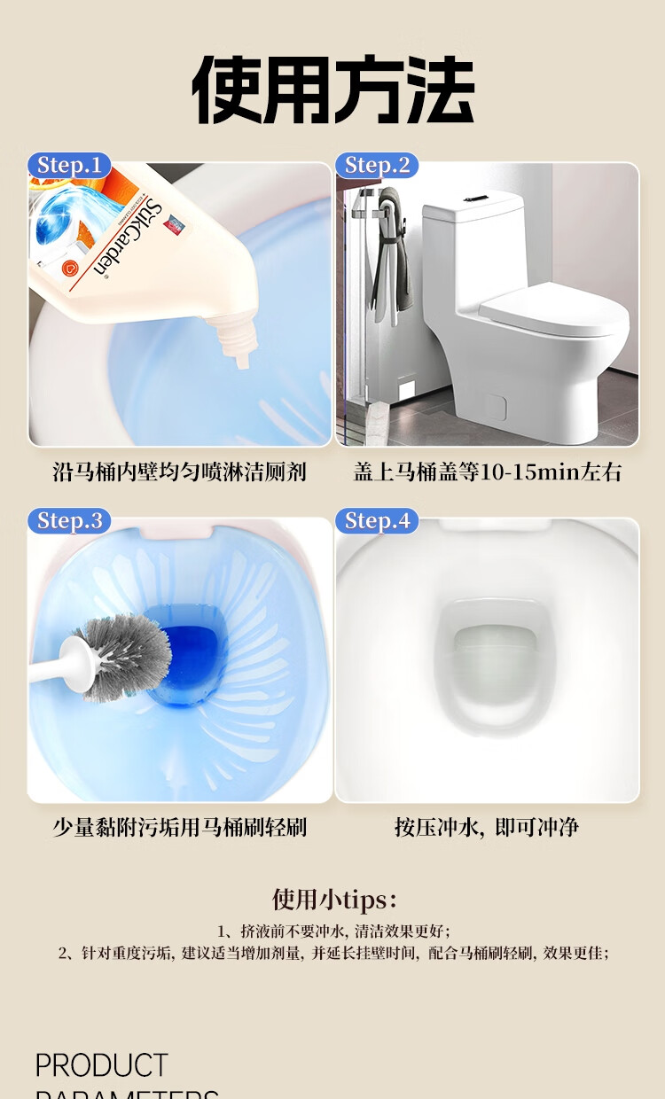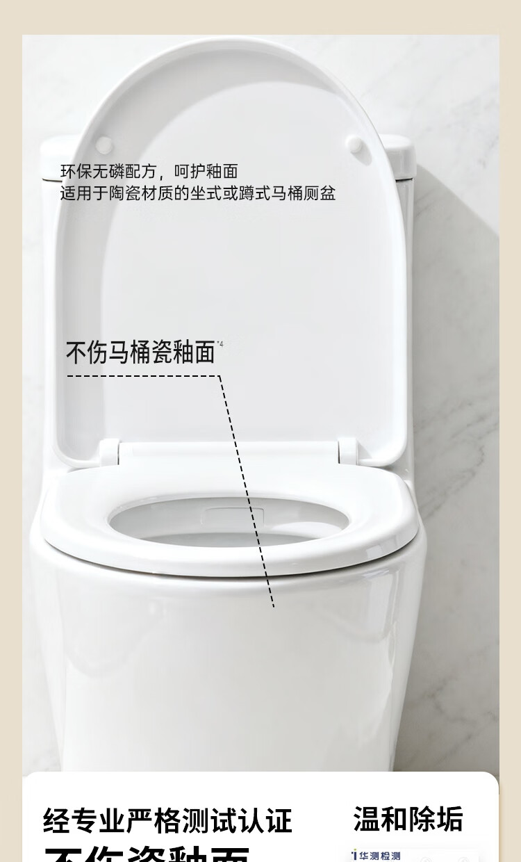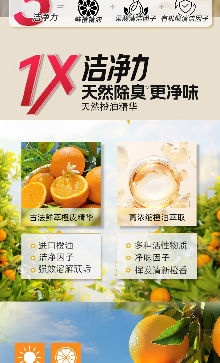 果酸无磷配方,温和除重垢,不伤瓷釉面;天然鲜橙油精华;弯嘴设计,凹槽死角全覆盖