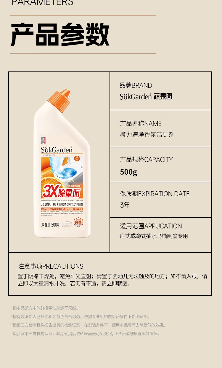 蔬果园 橙力速净香氛洁厕剂500gSGY0866
