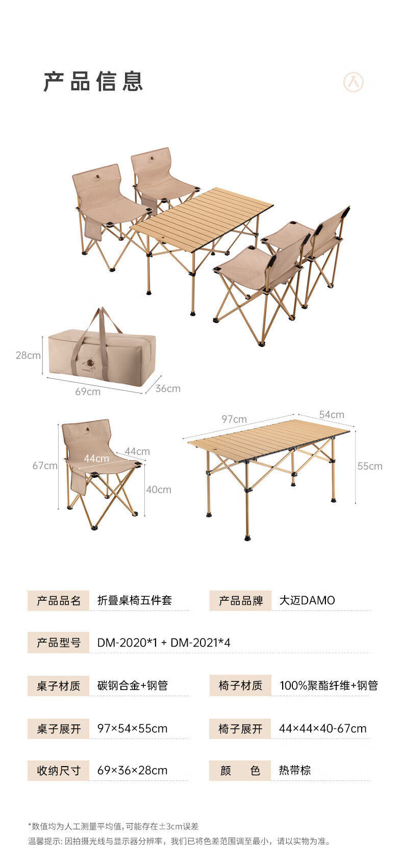大迈 户外便携折叠桌椅套装DM-2020*1+DM-2021*4