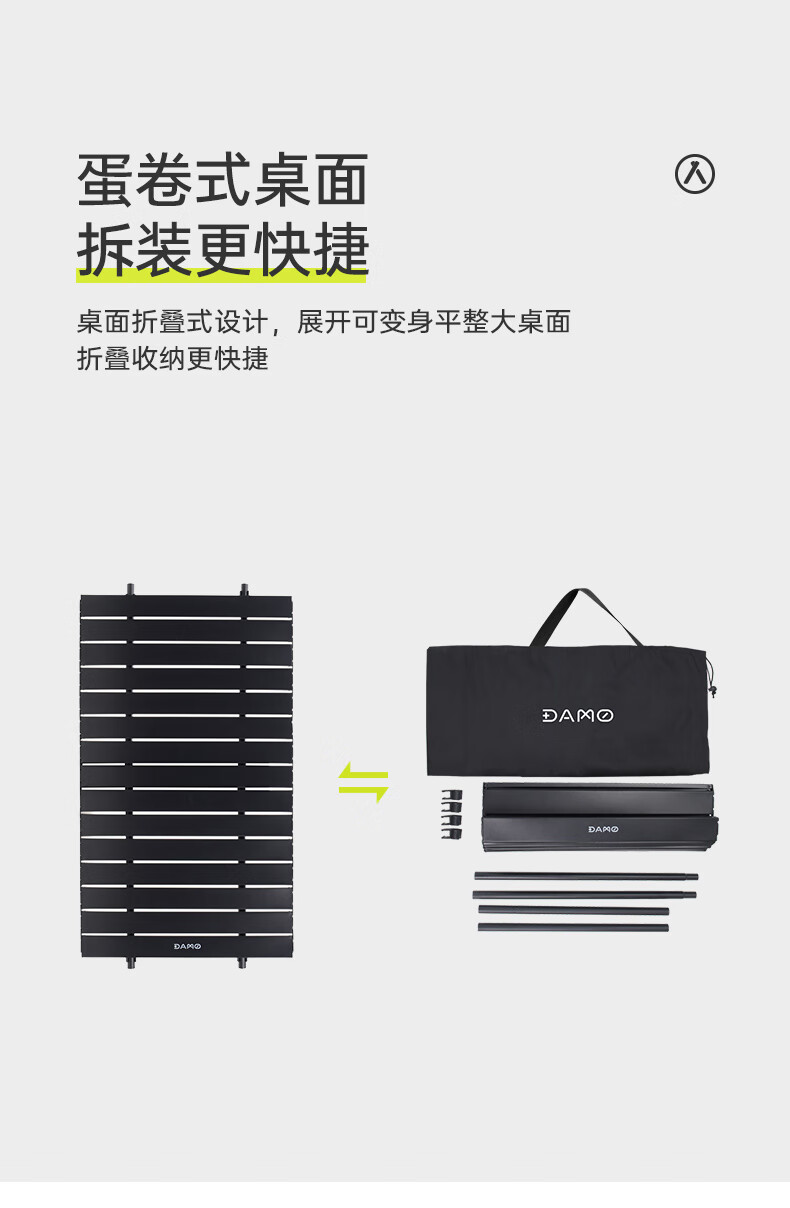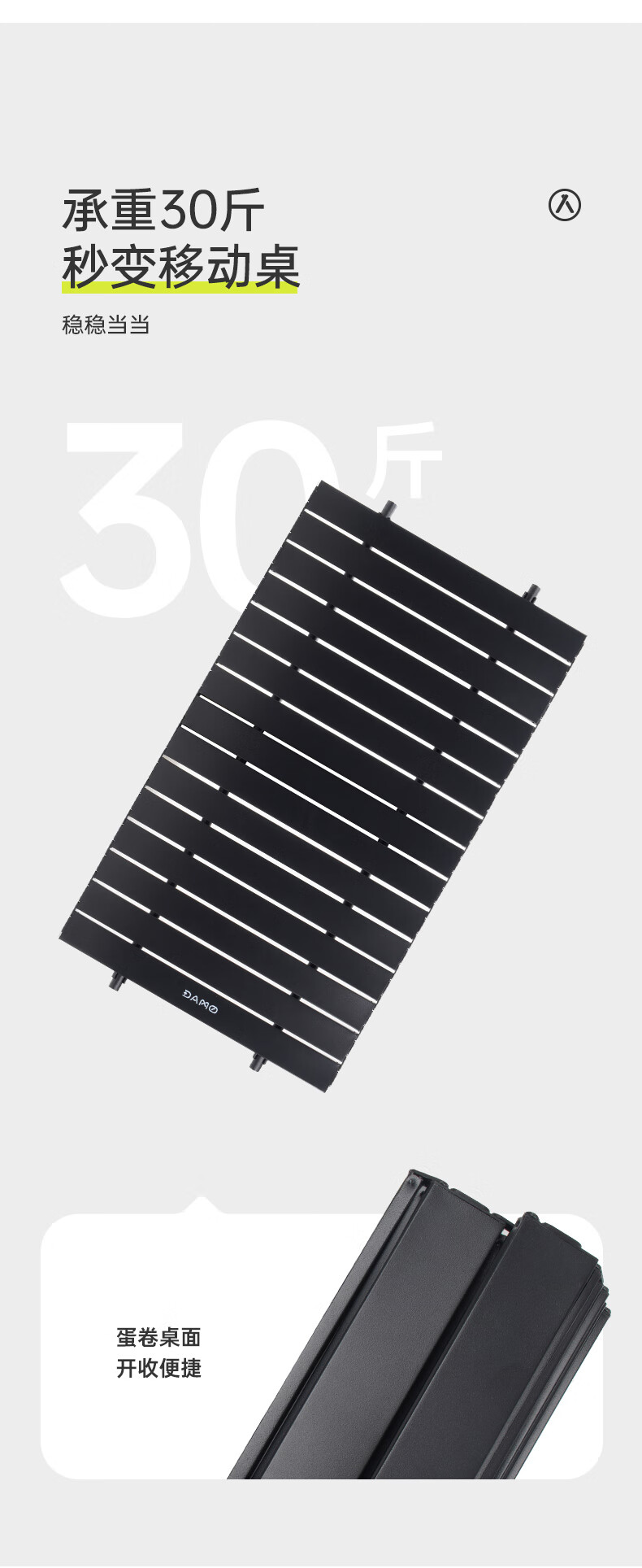 蛋卷桌面,搭配秒变移动桌;钢管撑杆,承重30斤;配收纳袋,携带方便