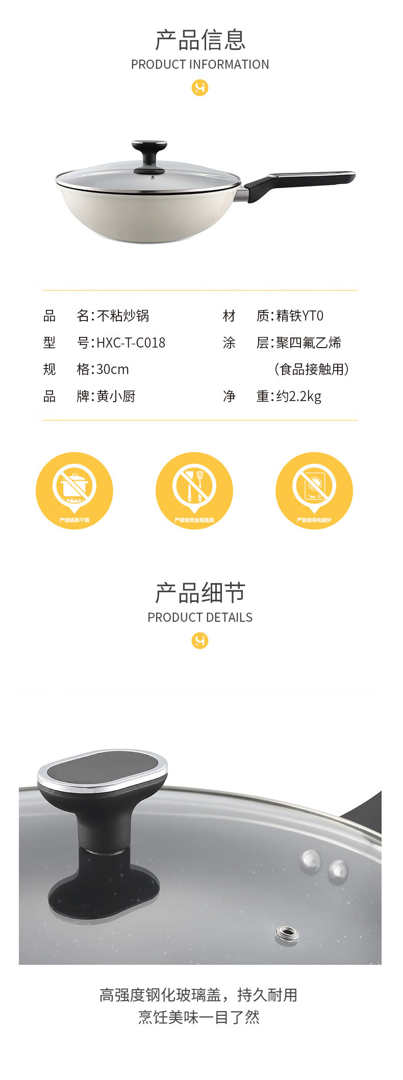 黄小厨 和美系列不粘炒锅30cmHXC-T-C018
