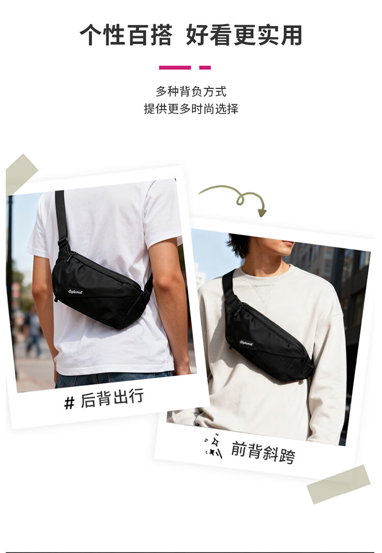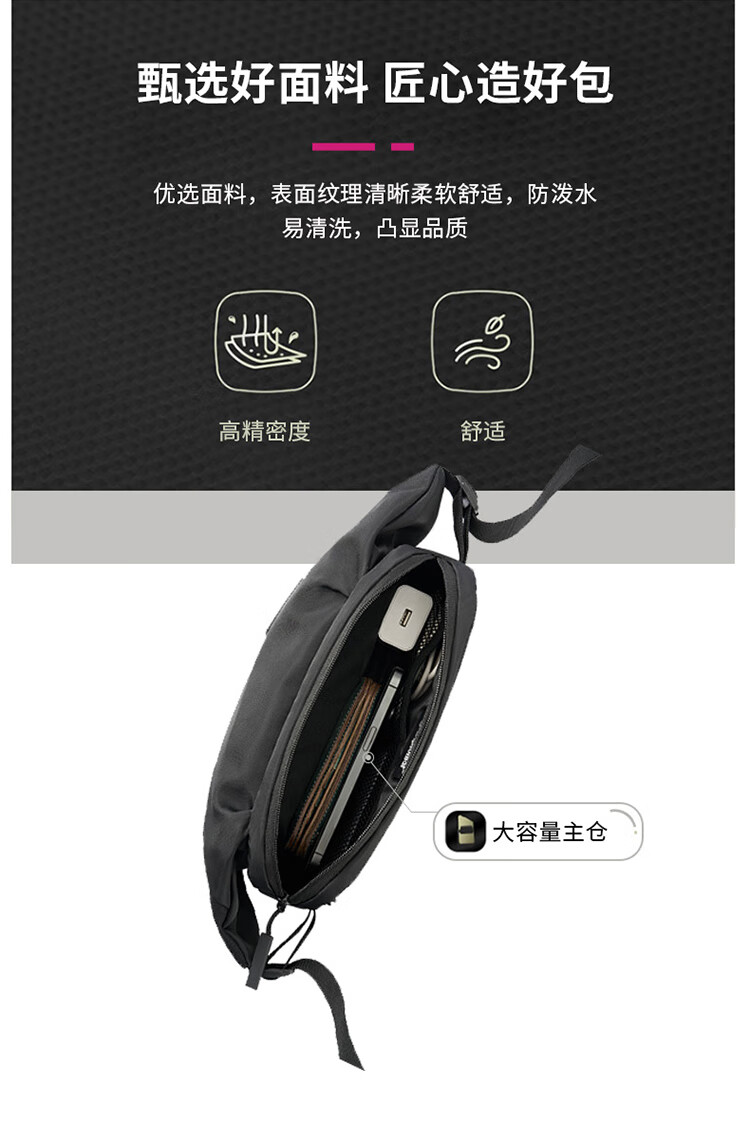 个性百搭,小巧能装,轻装出行;前置小物仓,快取快存;大容量主仓、隐藏物品收纳层;多隔层设计,巧妙有序收纳