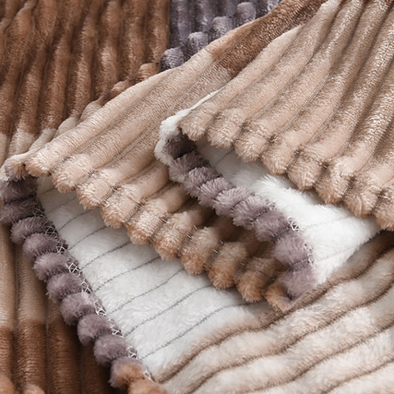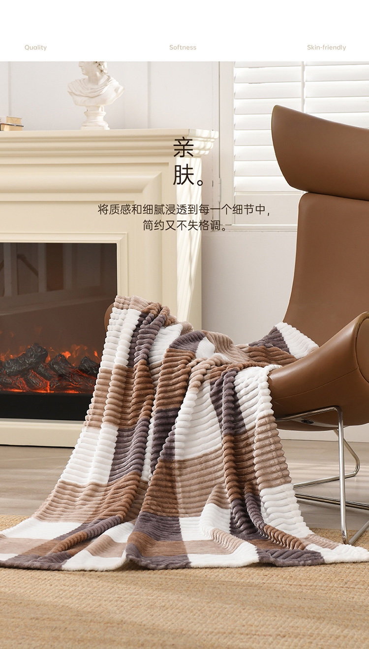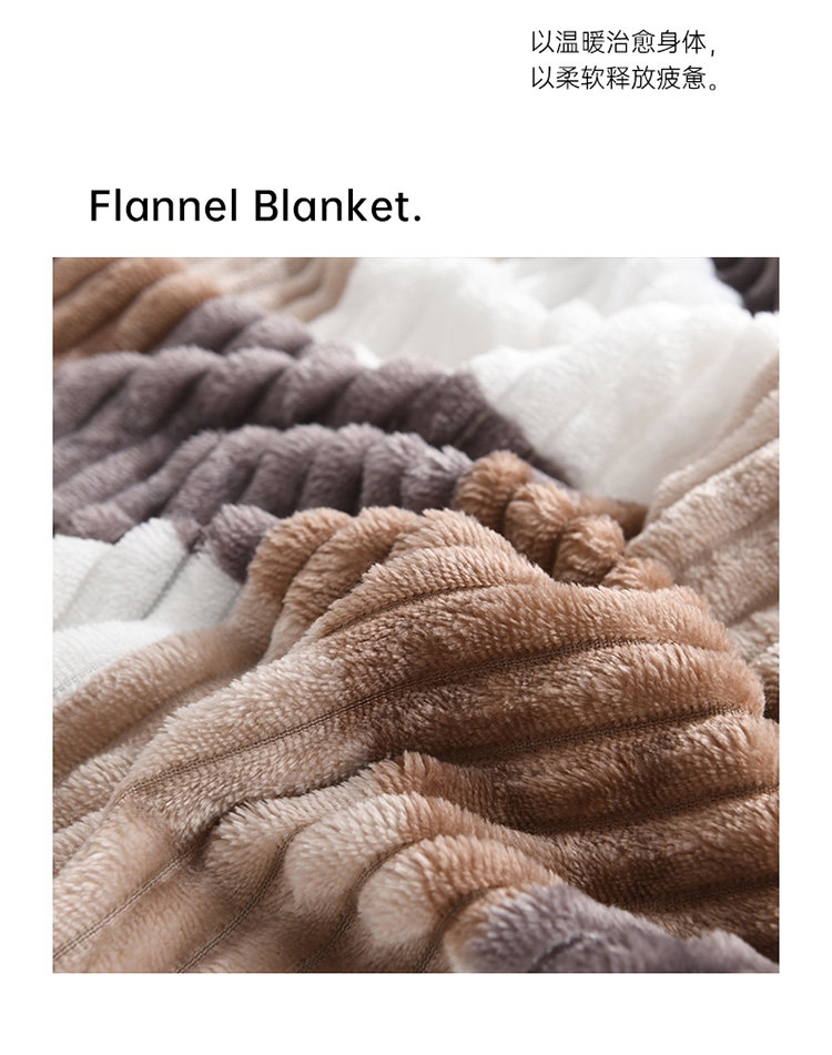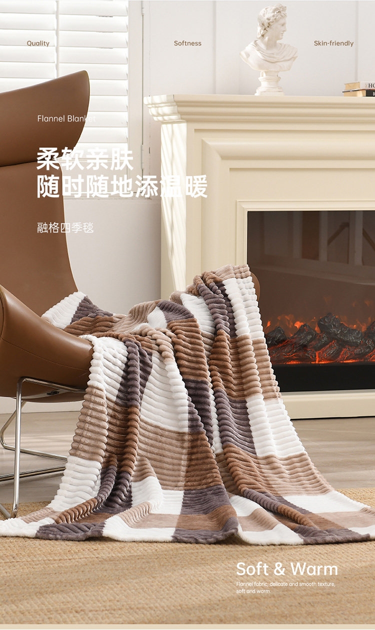 工艺精湛,卷边工艺,针距适中,美观耐看;;实用性强。可做披肩,可做午休毯,可做膝盖毯;采用法兰绒面料,触感细腻顺滑,柔软亲肤