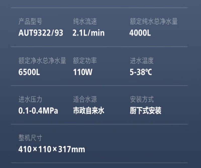 飞利浦 净水器家用净水机AUT9322