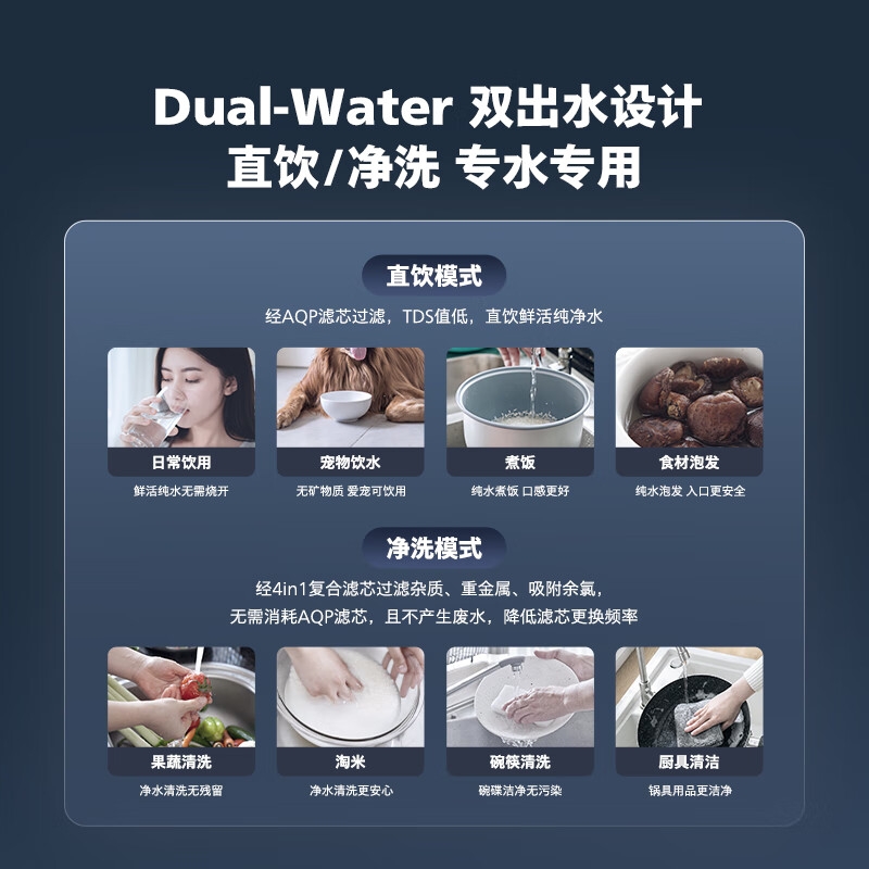 口感更佳 吸附性能持久;800G大通量高流速 畅快用水不久等;智能数显龙头 每杯水质看得见