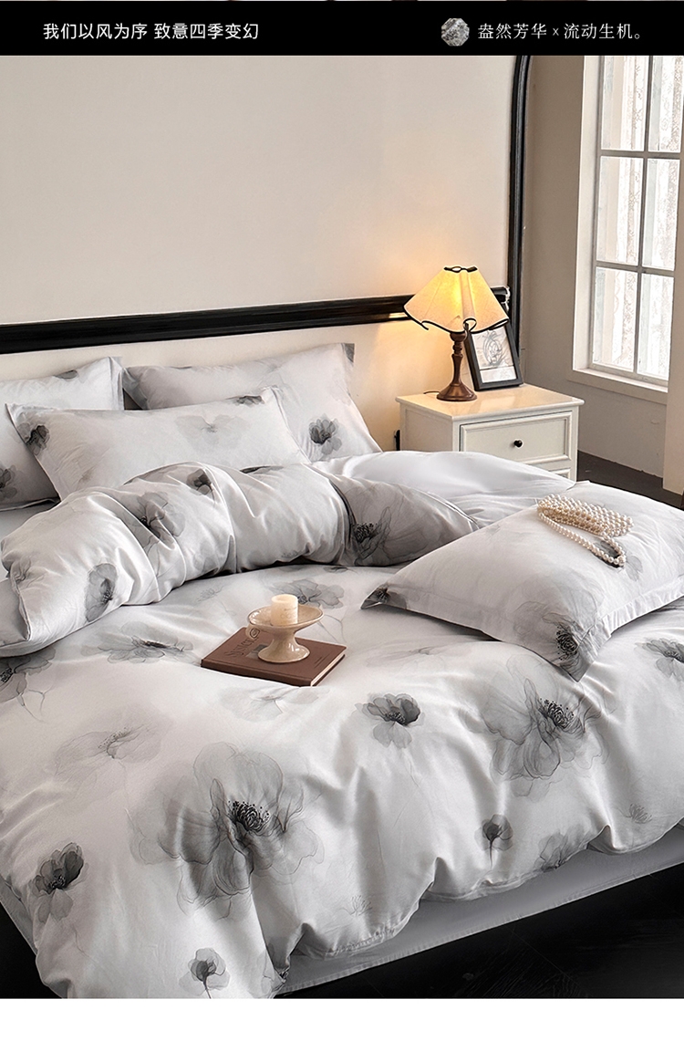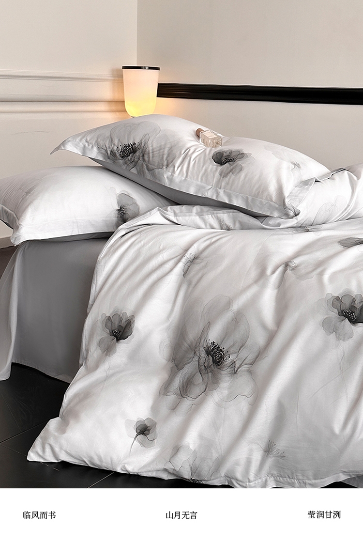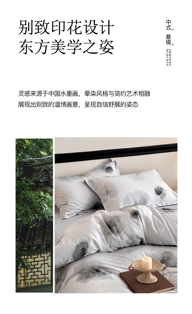洞穿时间的概念雕琢一抹灵动芳 新国风全棉四件套系列;使织物具有云朵般的柔软,增加软糯感和坚韧度。;较好的导湿性和透气性,不易闷汗,可肆意裸睡。