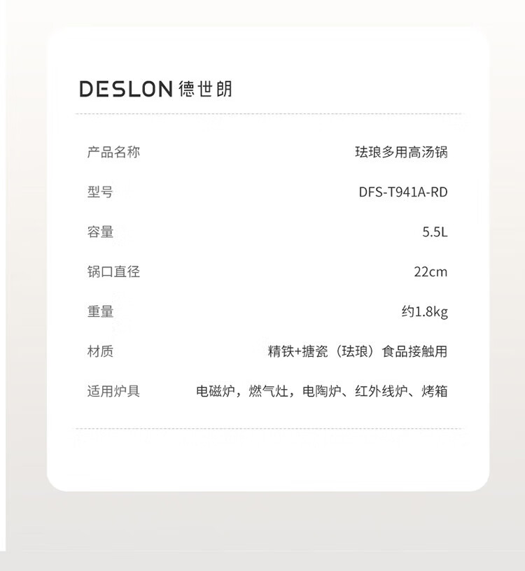 德世朗 珐琅多用高汤锅22cmDFS-T941A-RD/DFS-T941A-BU