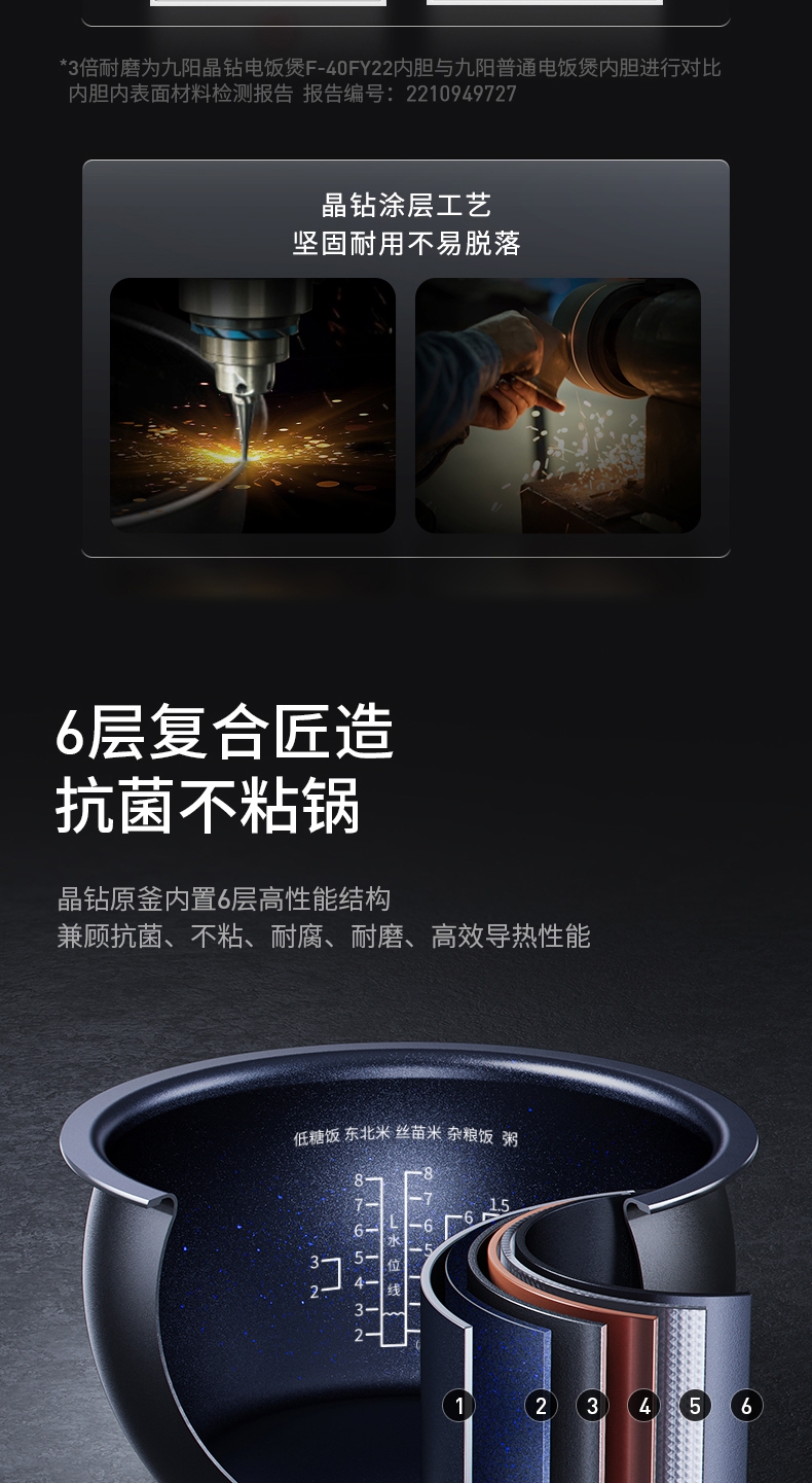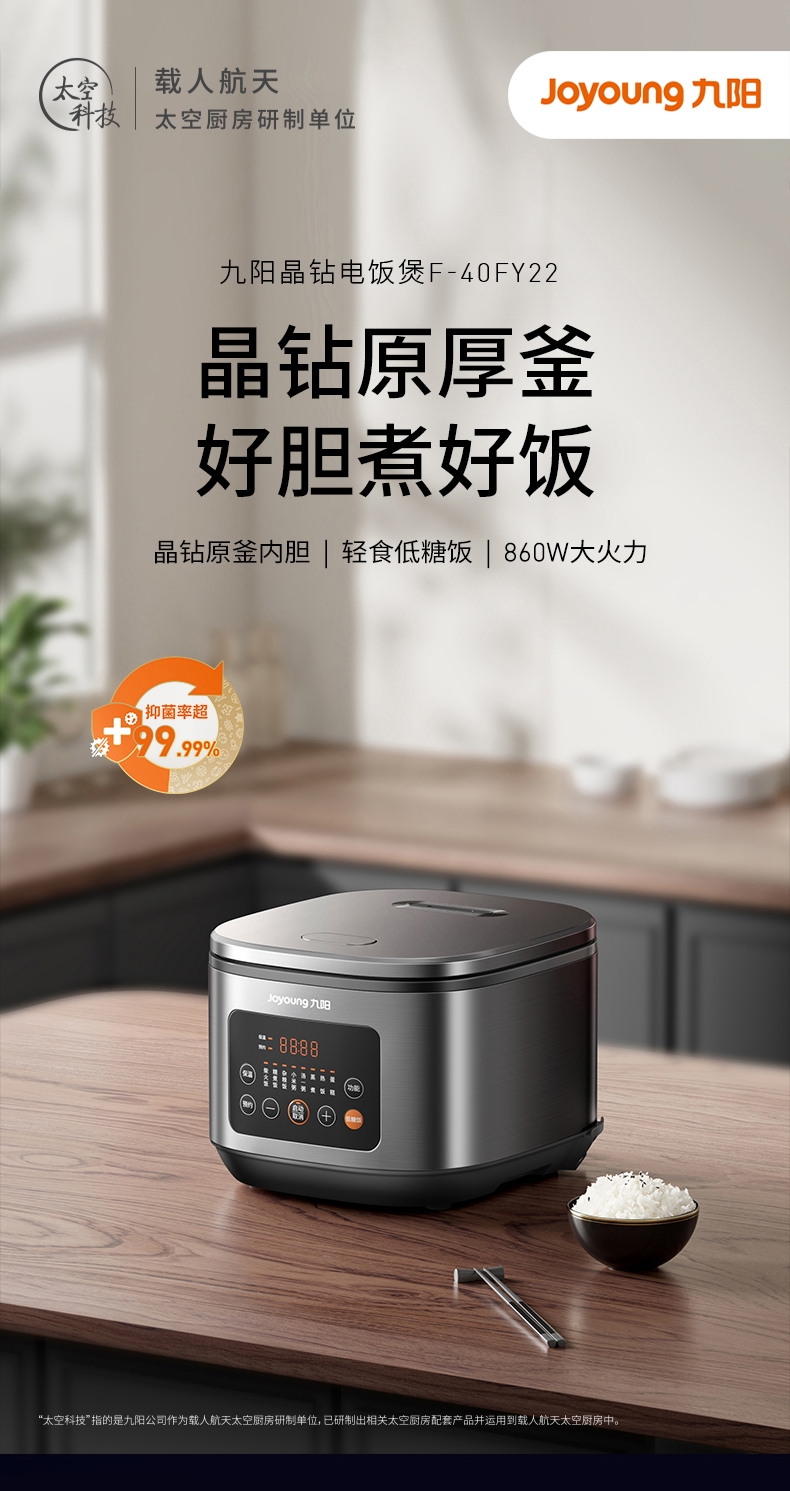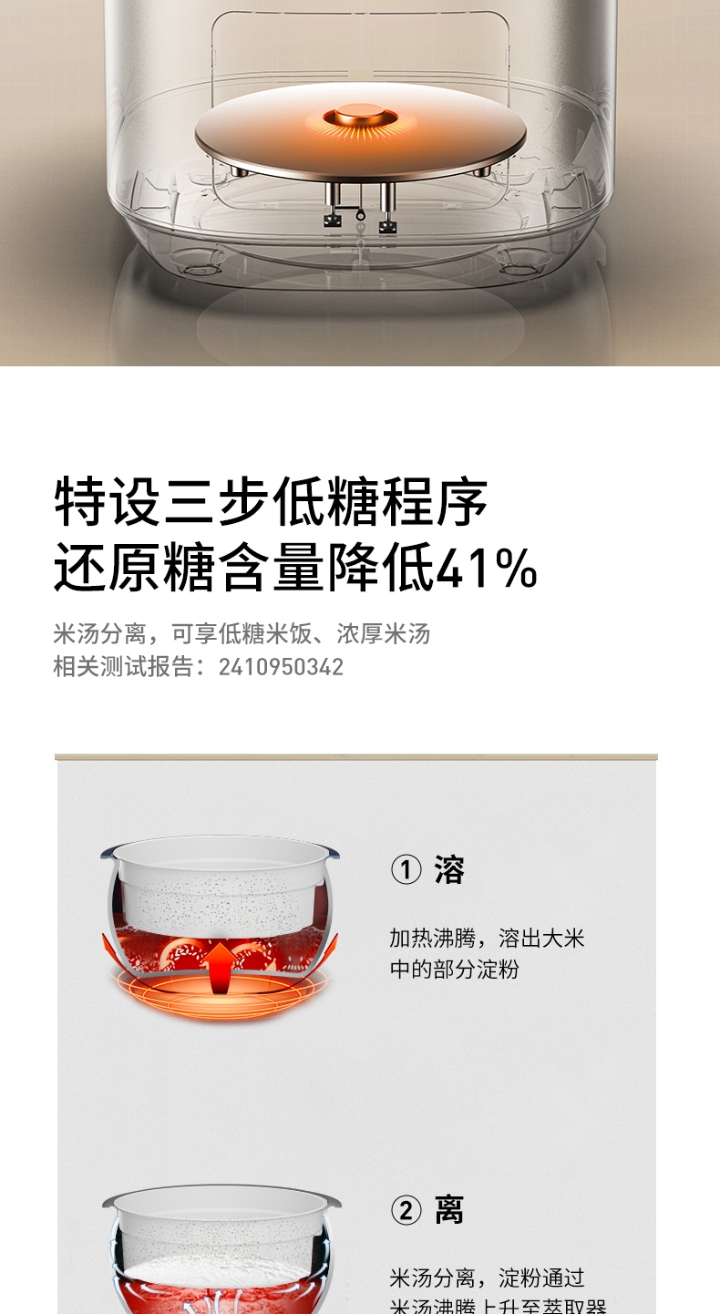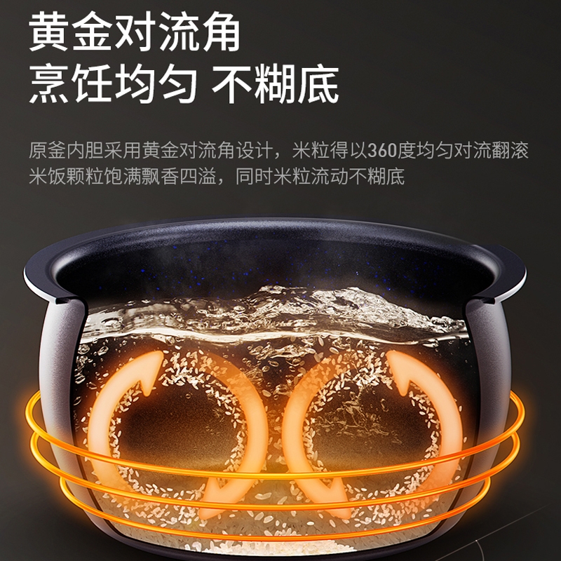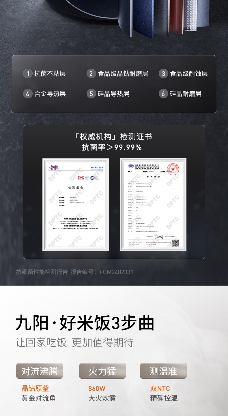 特色低糖饭,减糖不减饭香;晶钻抗菌球胆,抗菌率;860W猛火加热,高效聚能导热