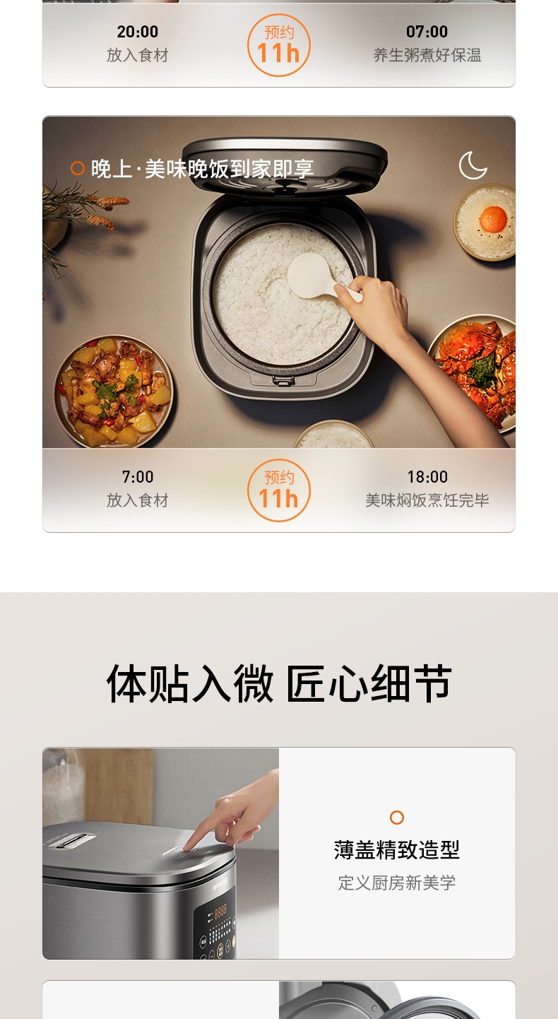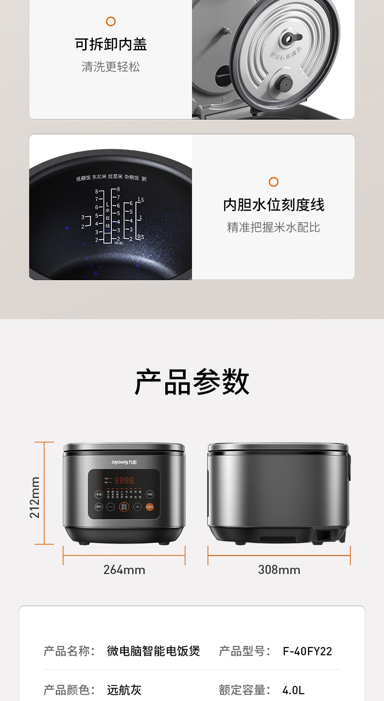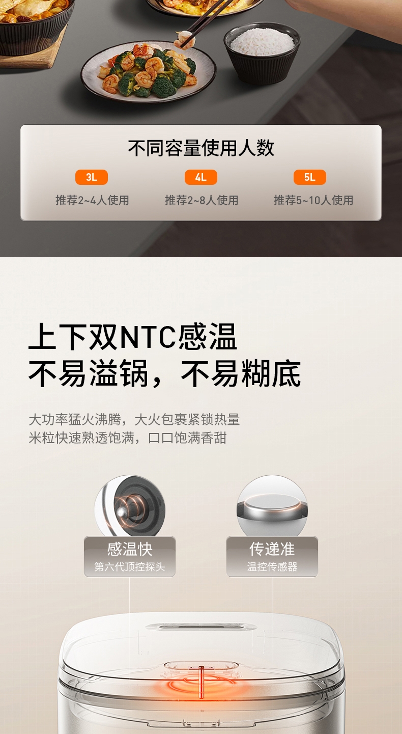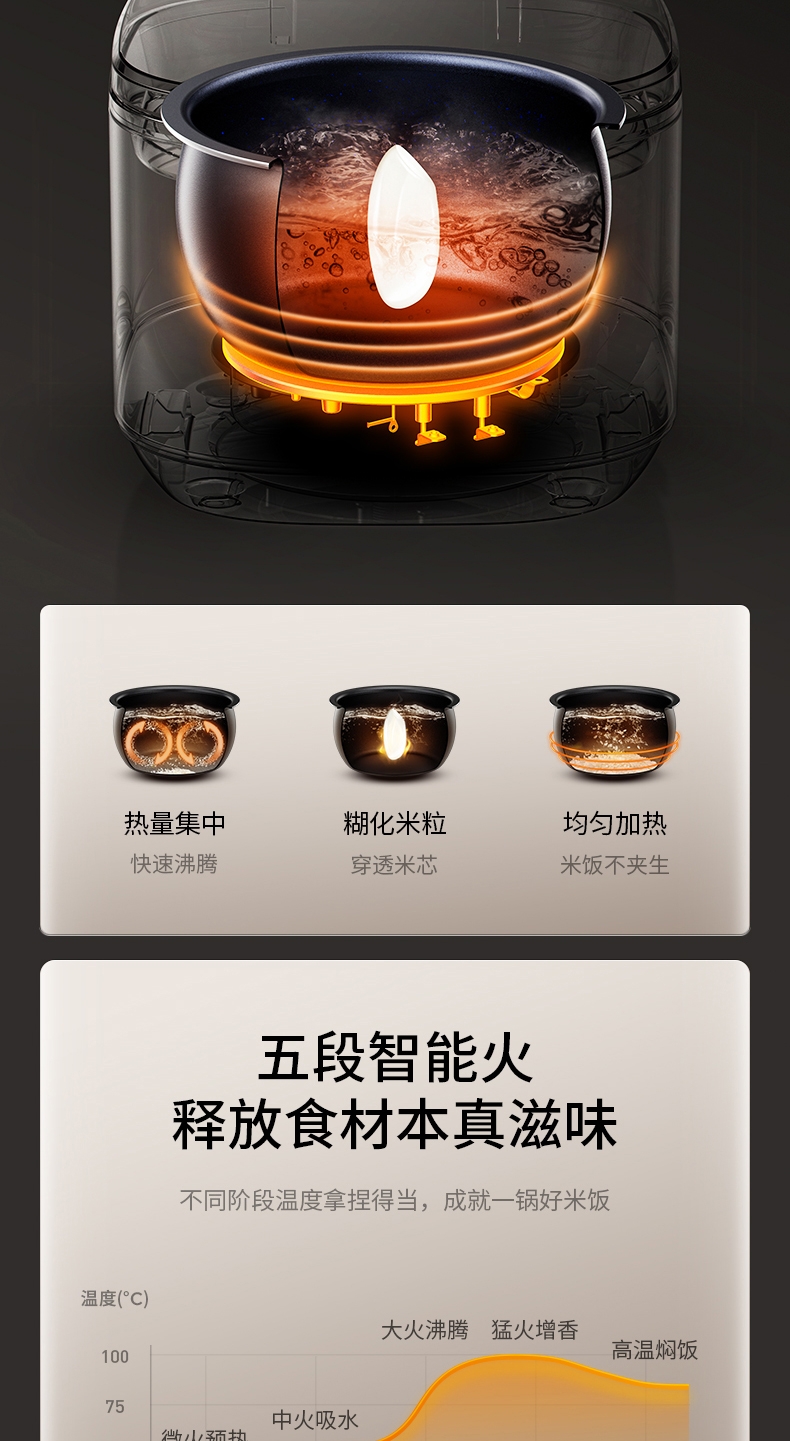 特色低糖饭,减糖不减饭香;晶钻抗菌球胆,抗菌率;860W猛火加热,高效聚能导热