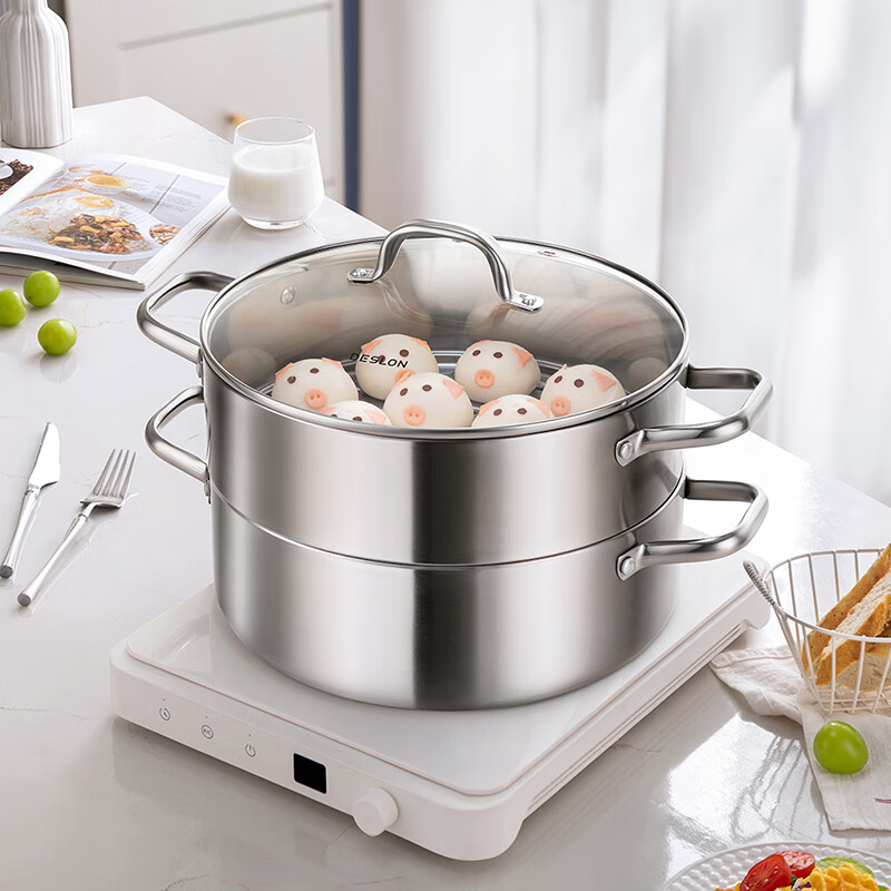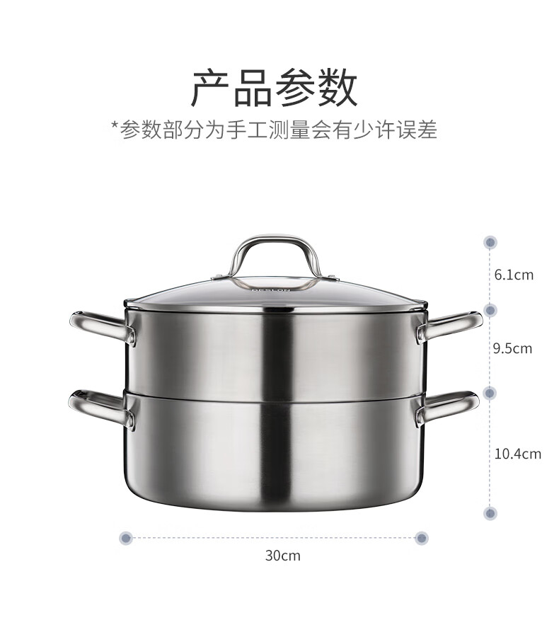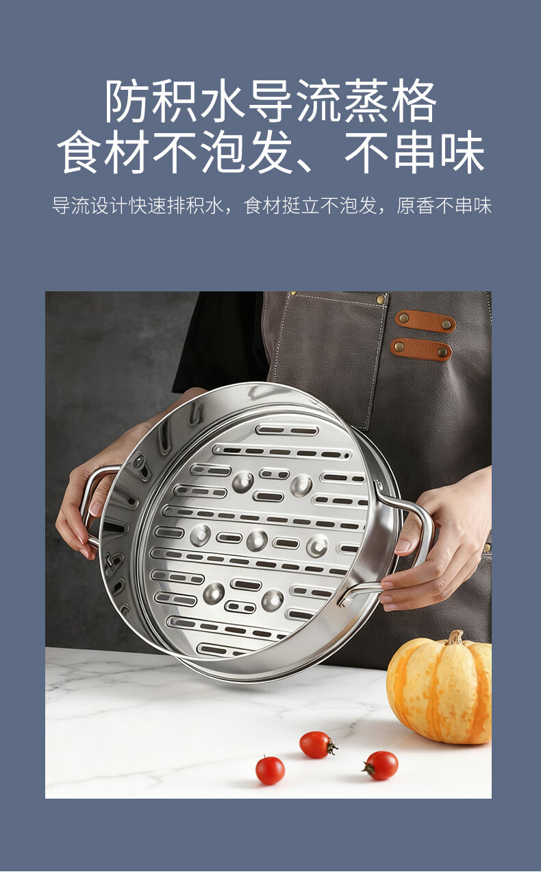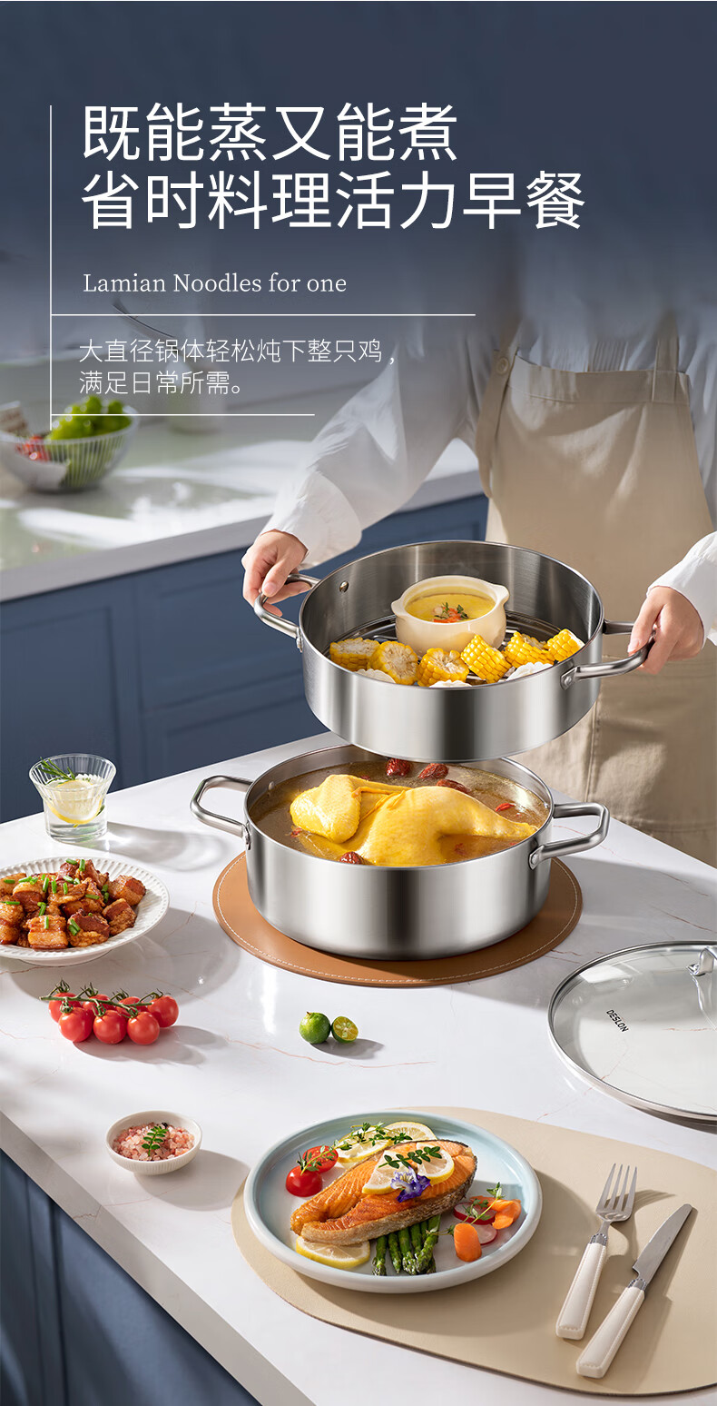 外壁缎面抛光,展现产品高端品质,内壁光滑易清洁;;大直径可放整条鱼,上蒸下煮、同时出锅多份菜品;;不挑炉具,炉灶通用。