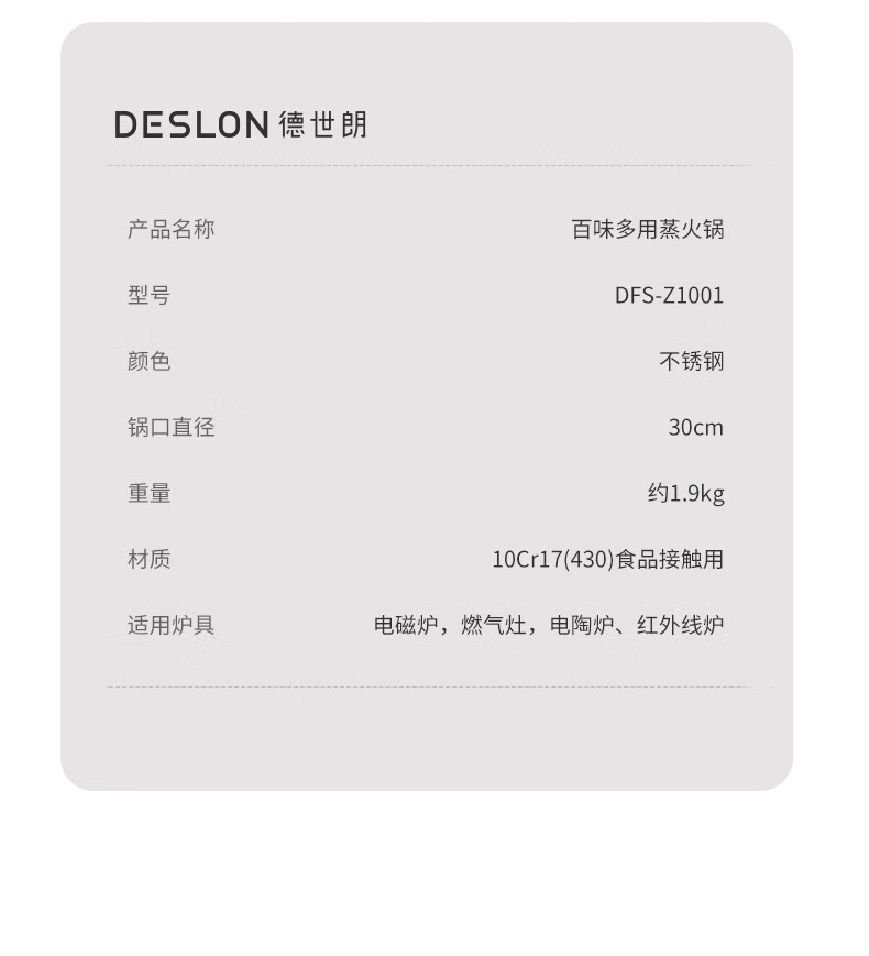 德世朗 百味多用蒸火锅30cmDFS-Z1001