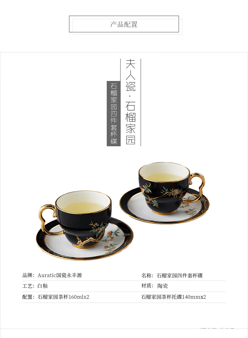 4头茶咖杯配置:石榴家园茶杯160ml*2、石榴家园茶杯托碟140mm*2