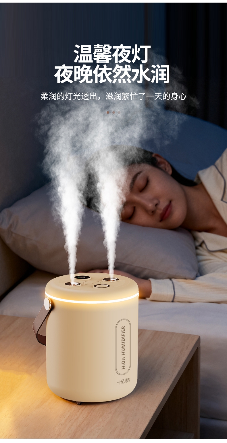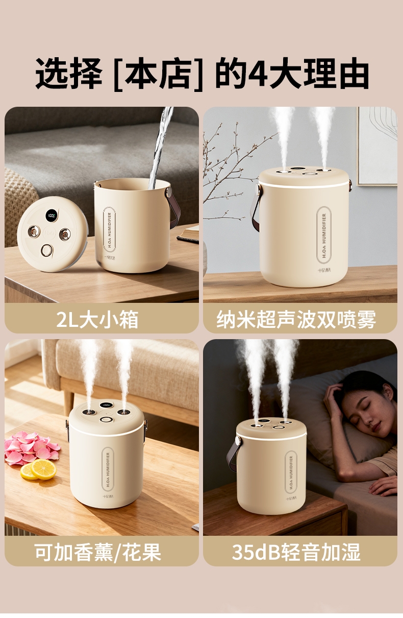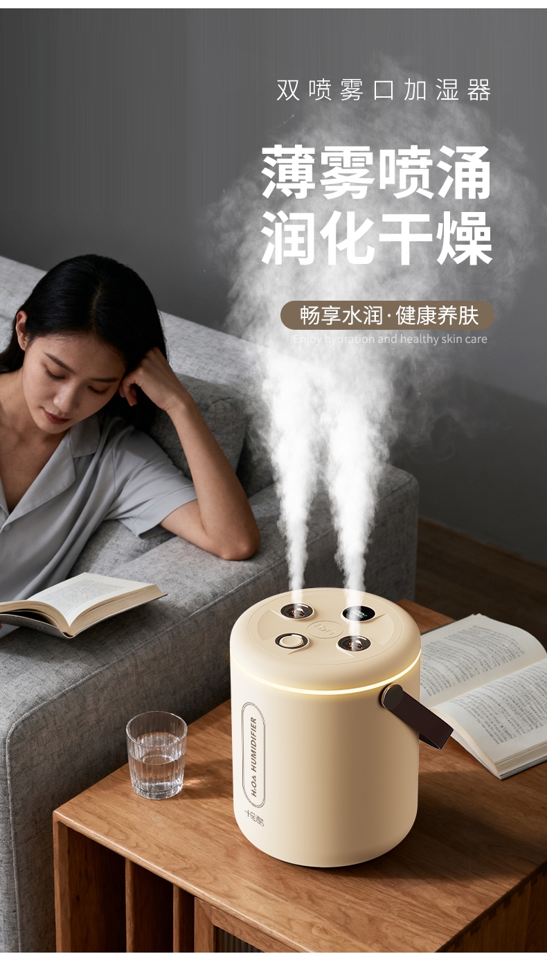 适用于办公室、房间、车内等场所,双喷雾,2升大容量;智能炫彩加湿器;即是加湿器又是一款炫彩小夜灯