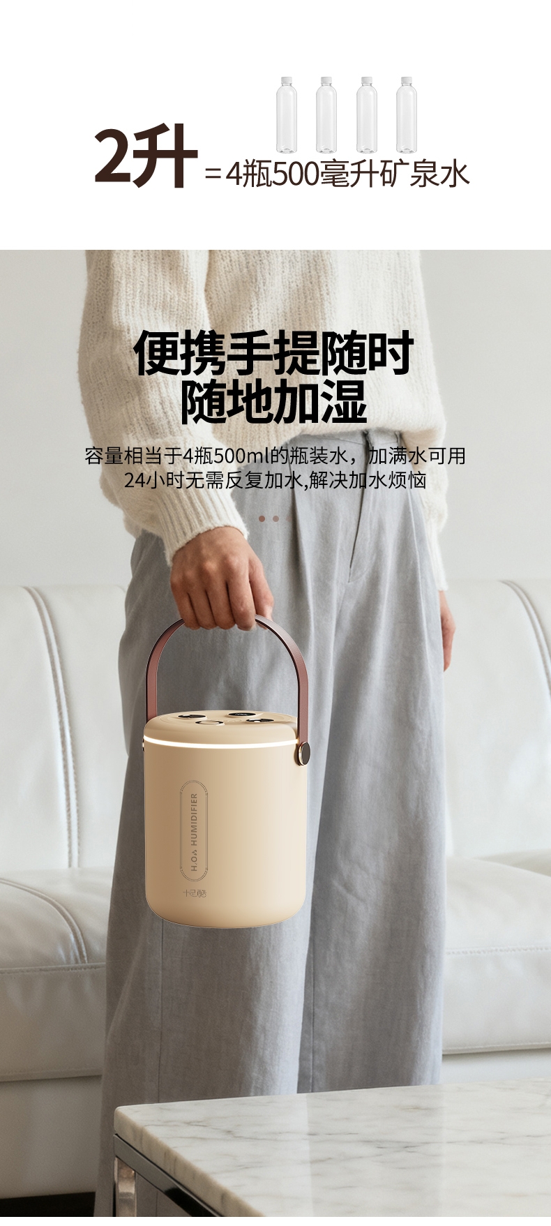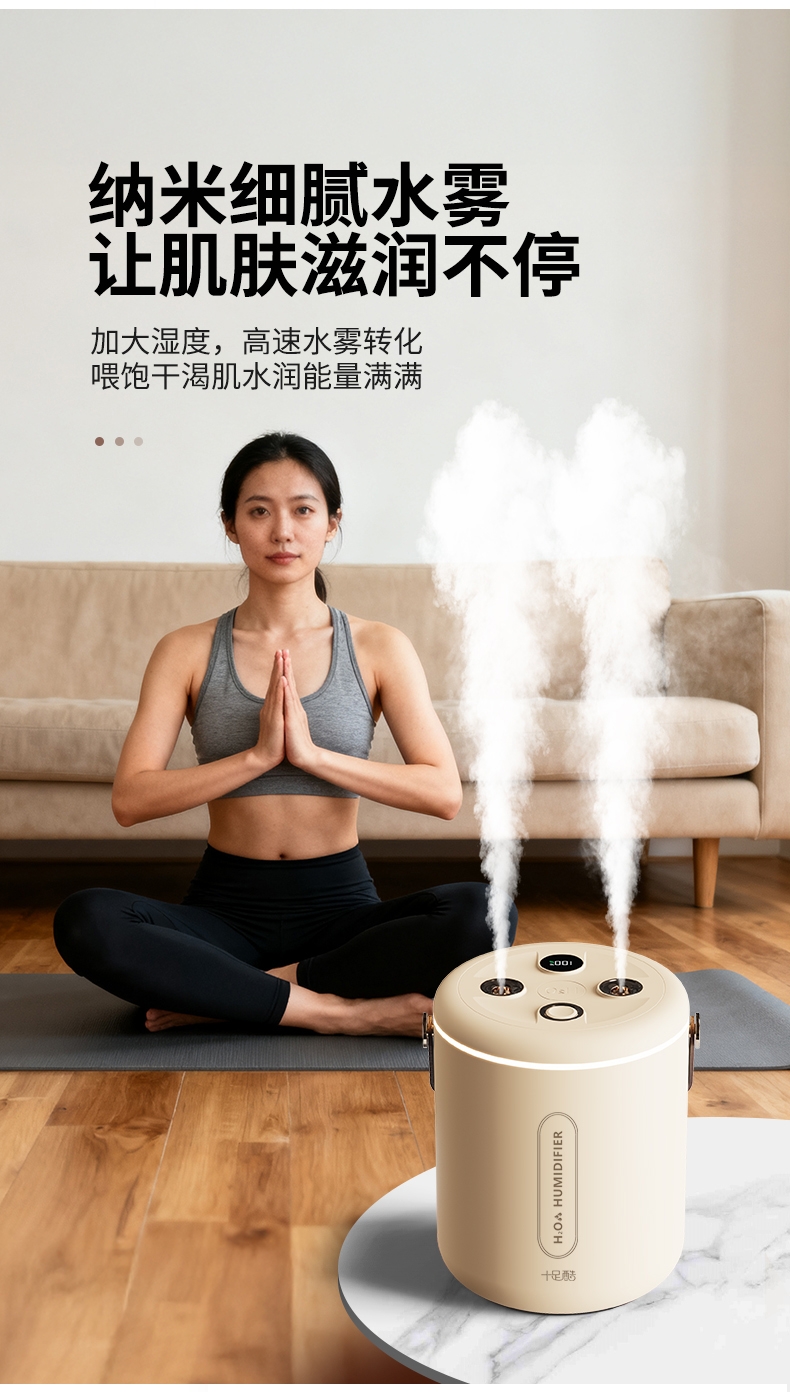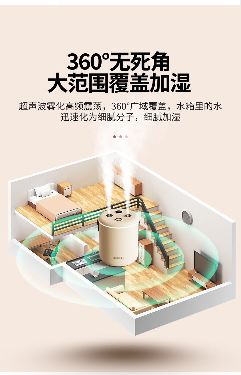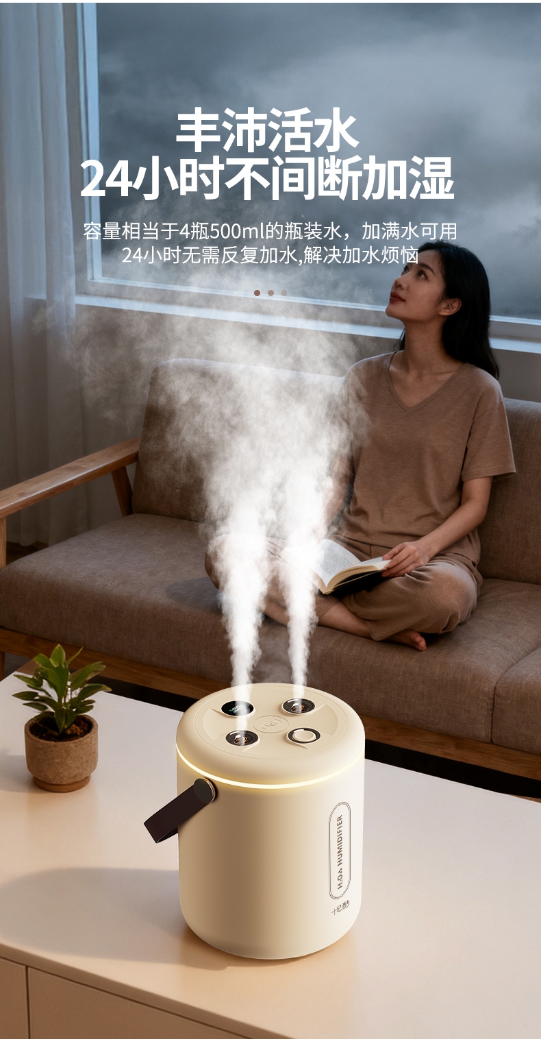 适用于办公室、房间、车内等场所,双喷雾,2升大容量;智能炫彩加湿器;即是加湿器又是一款炫彩小夜灯