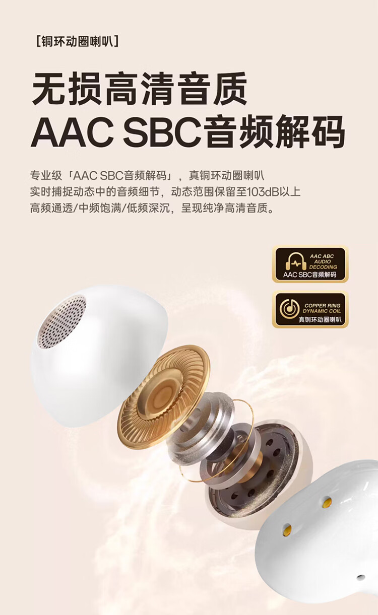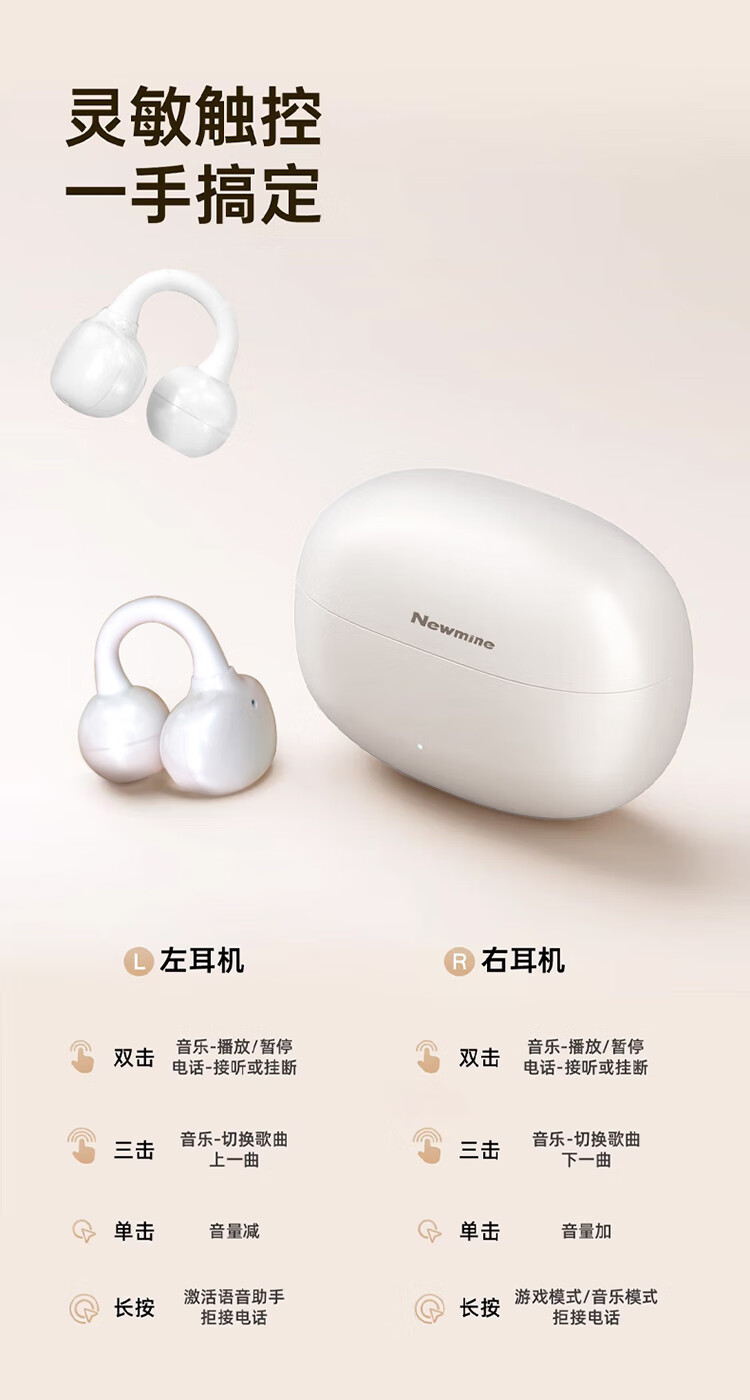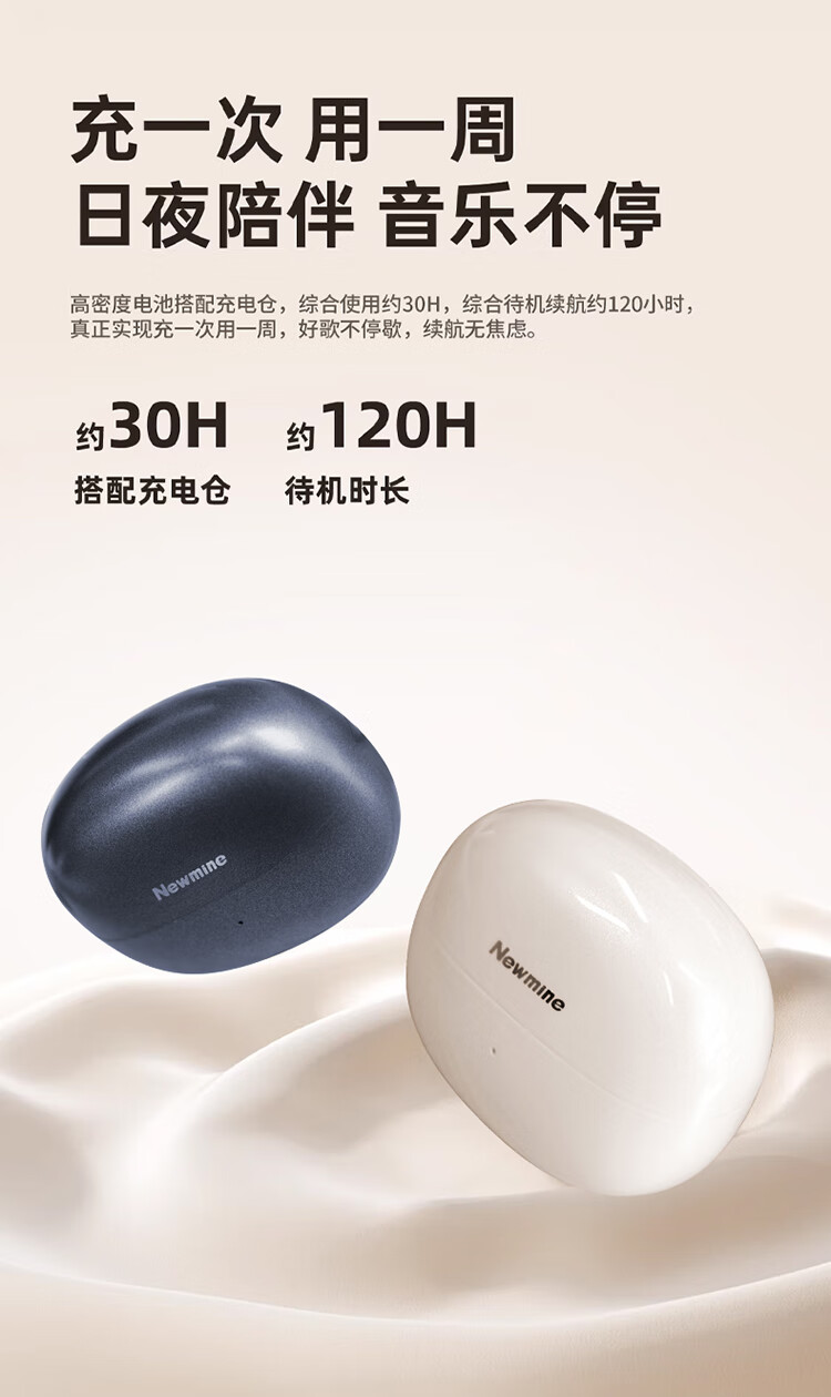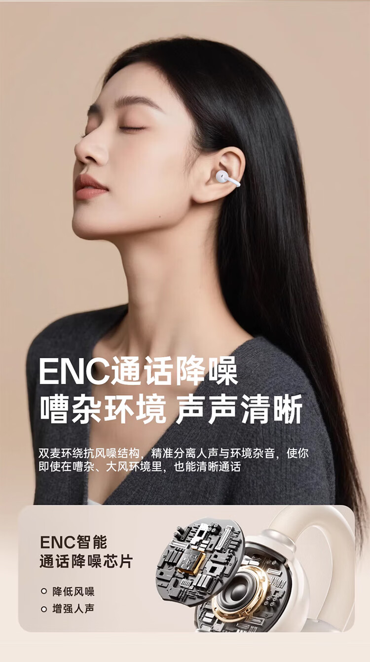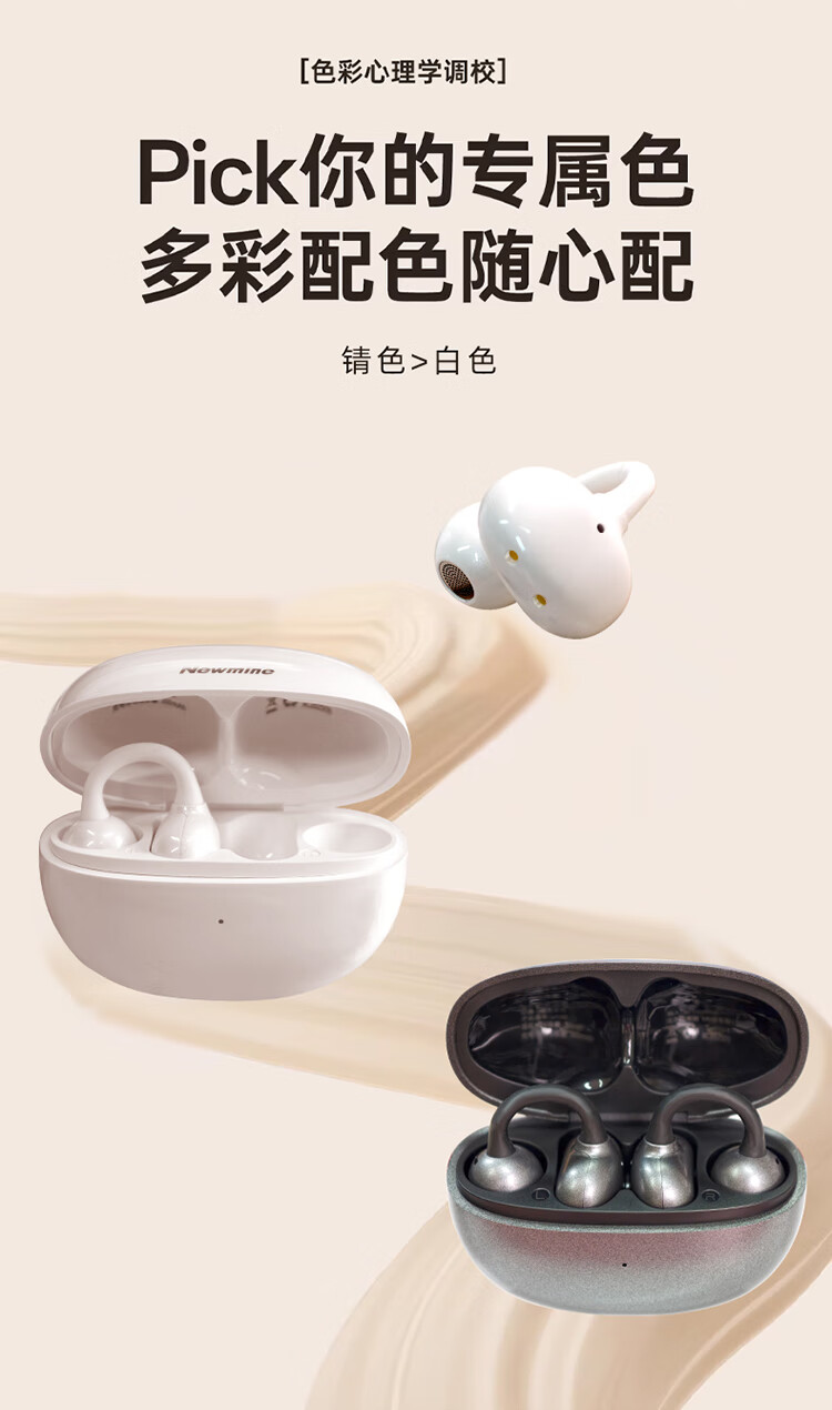 3D全景声场,呈现纯净高清音质;蓝牙快连5.4, 开盖开机秒连接;佩戴轻松,仿生支撑结构