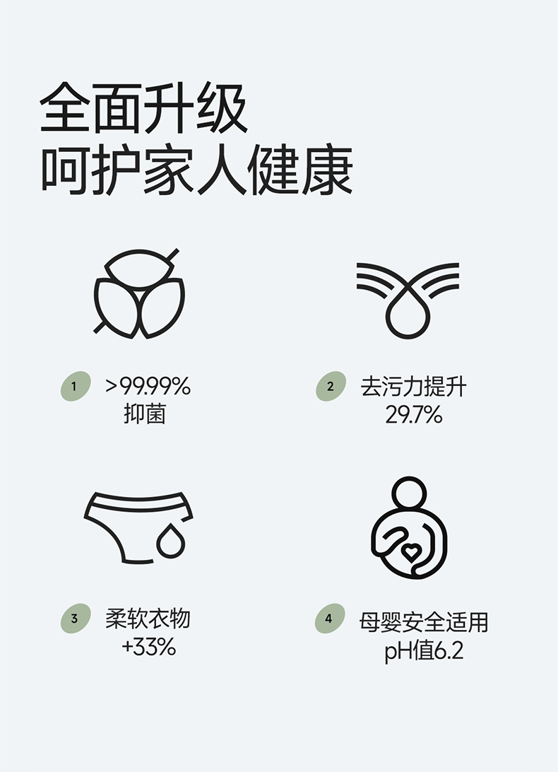 坚持健康优先;孕妇婴童可用,亲肤不刺激;深入衣物纤维去除顽渍