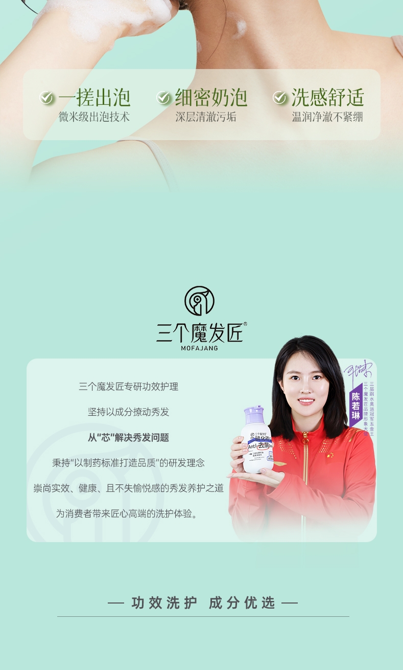 强健发根,减少脱发,让秀发更浓密 ;油离头发,游离烦恼 ;控油实力派,清爽新一代