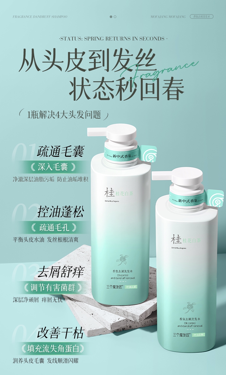 三个魔发匠 香氛去屑洗发水桂花白茶XYR-CP-2594