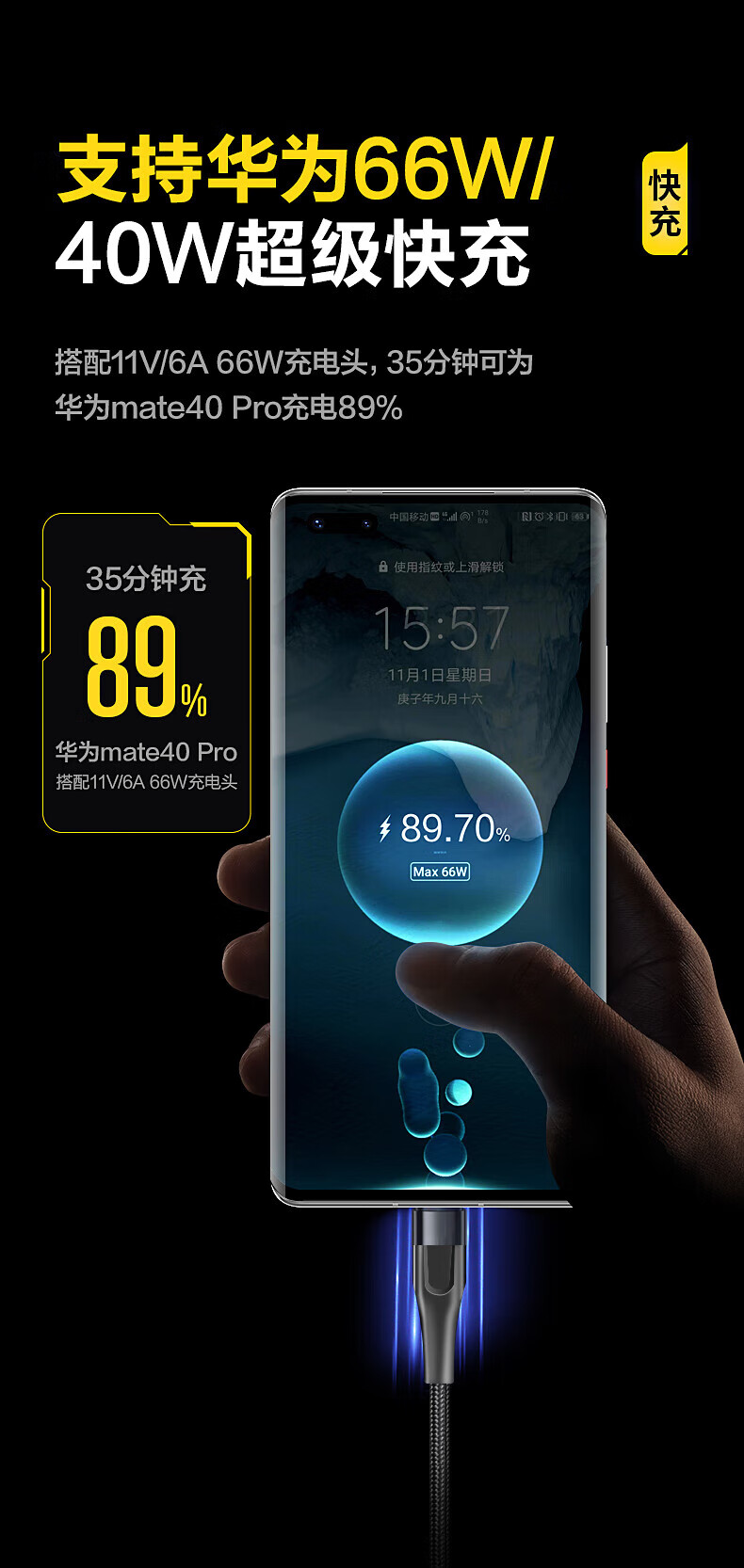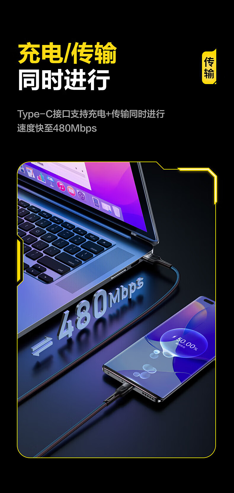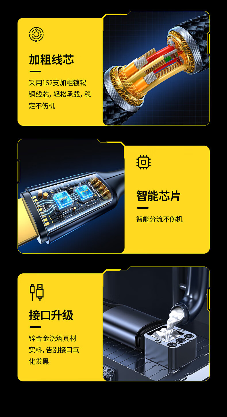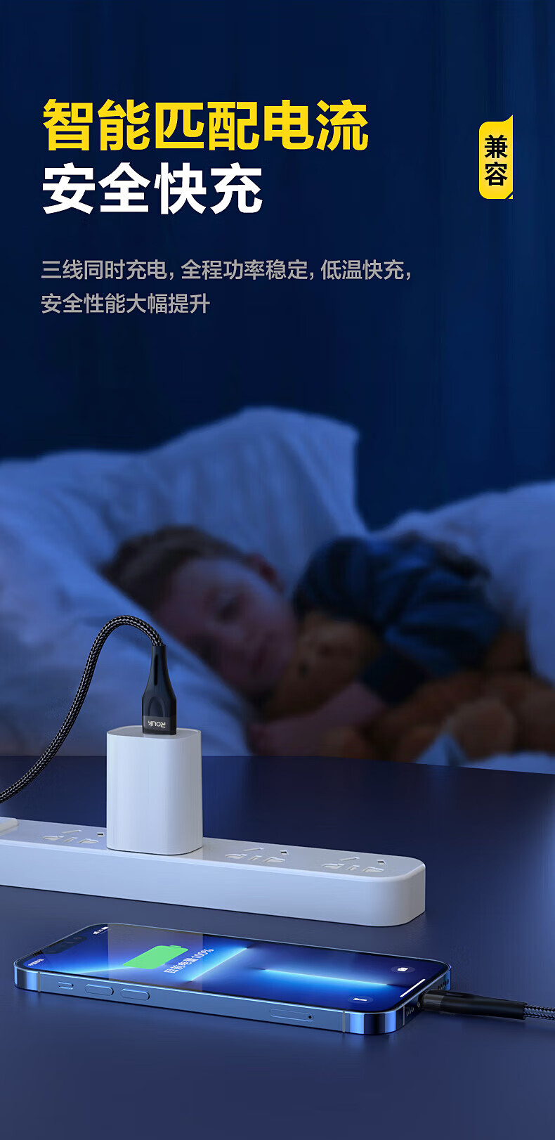 一线三充 桌面简洁/出门减负;5A输出,适用于闪充;尼龙拉车线,品质有保证,耐用结实