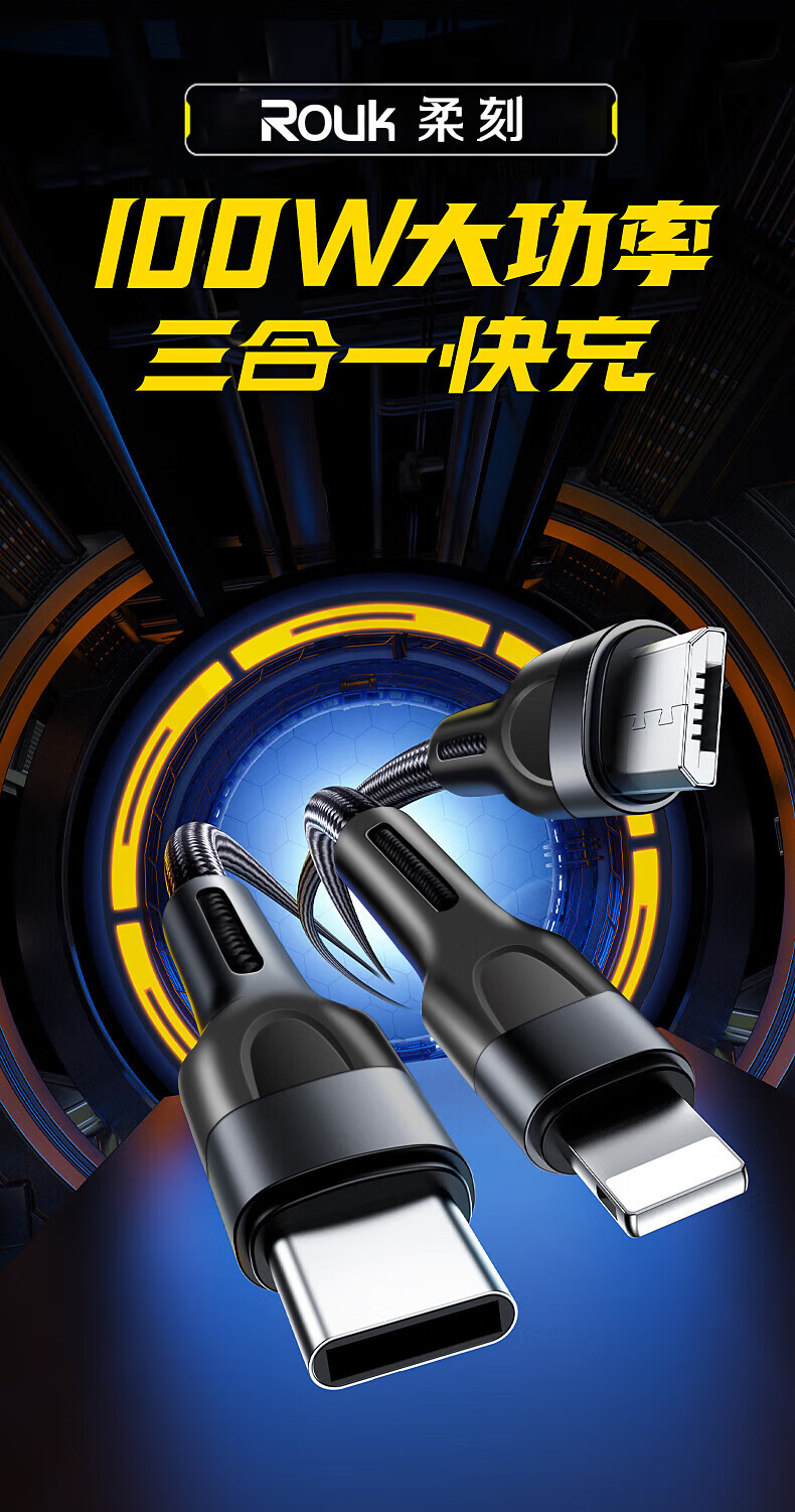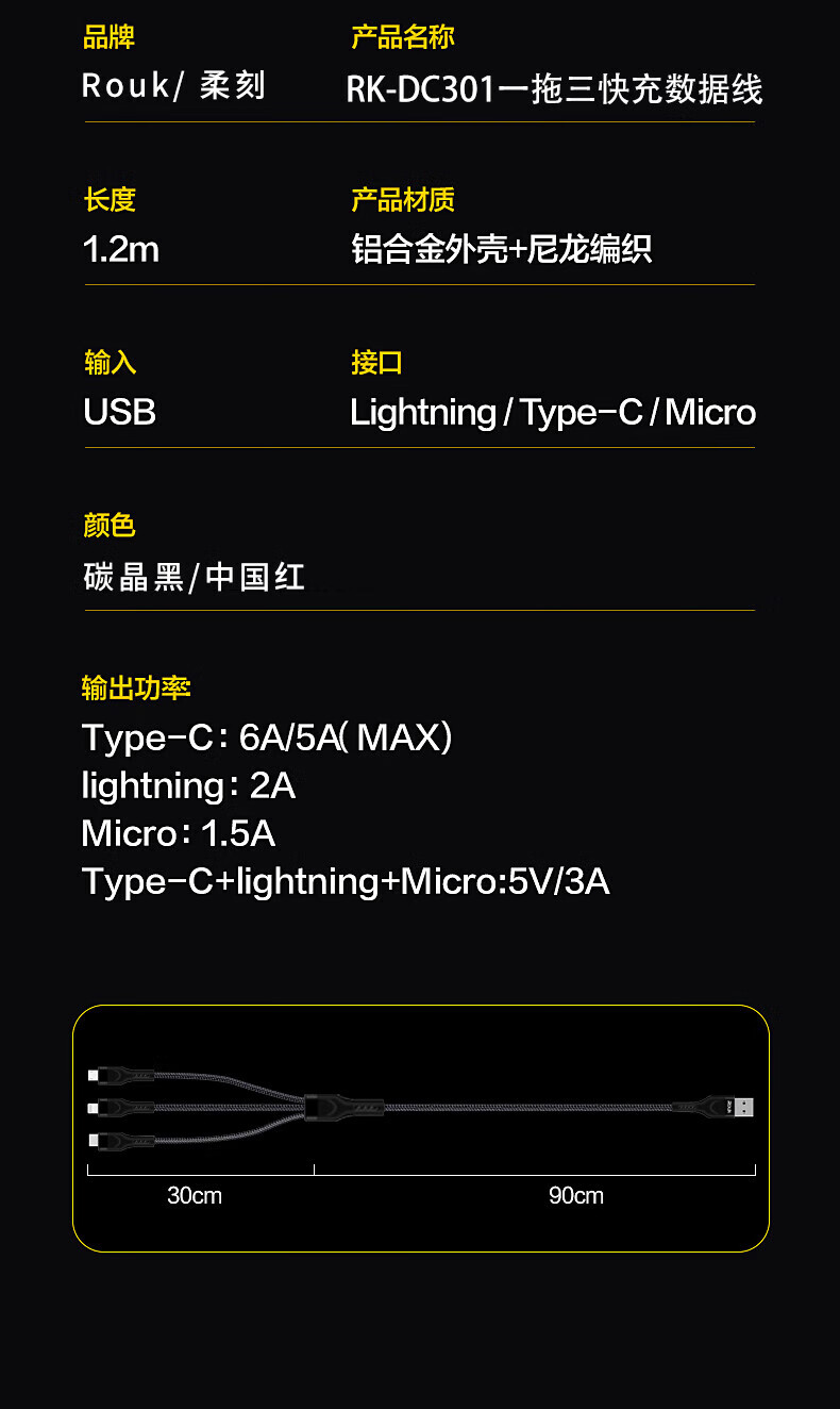 柔刻 三合一数据线充电线RK-DC301