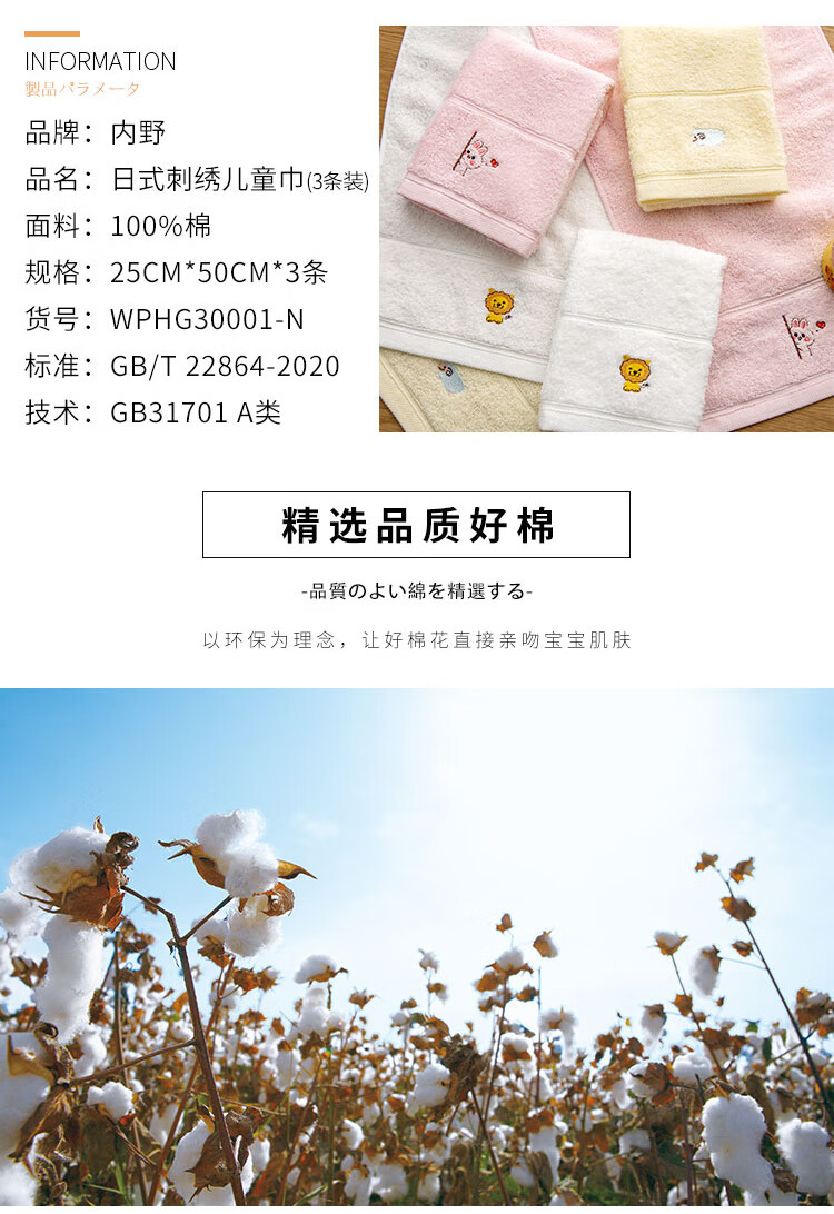 内野 日式刺绣儿童巾3条装WPHG30001-N