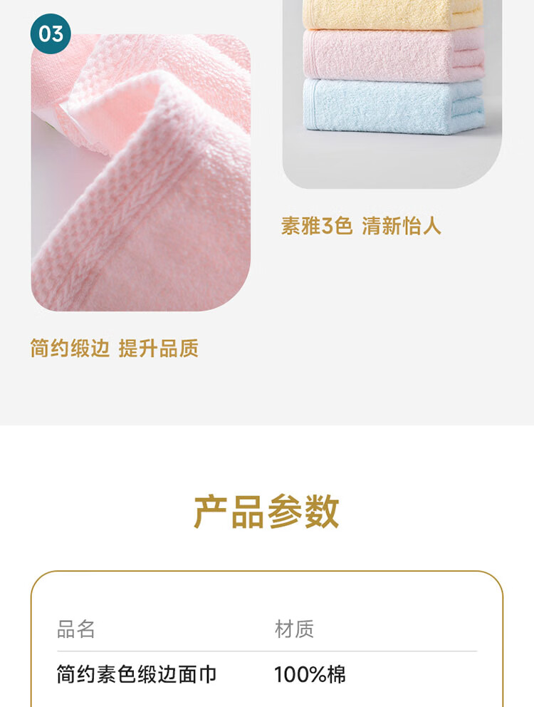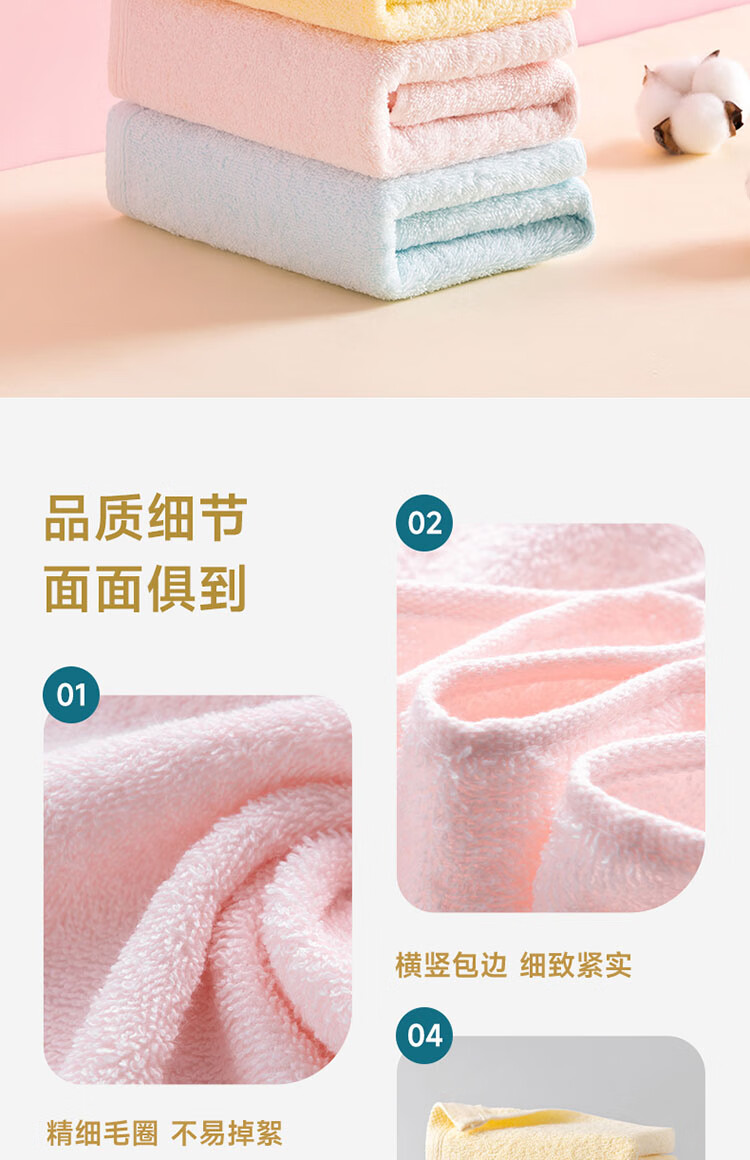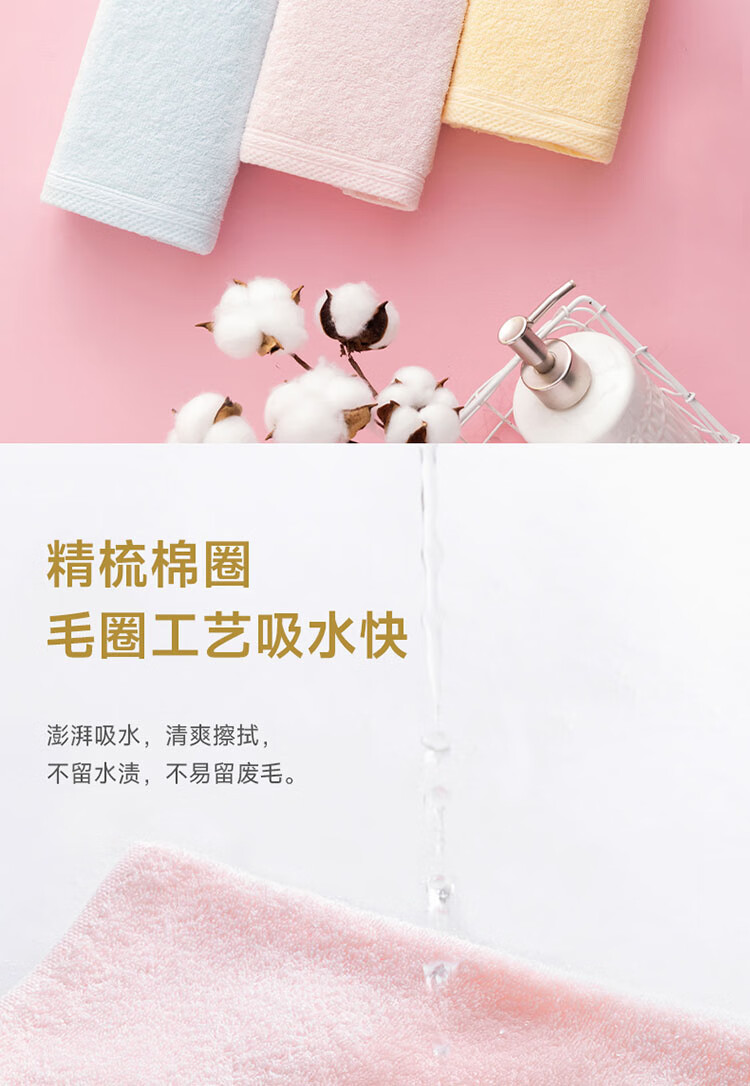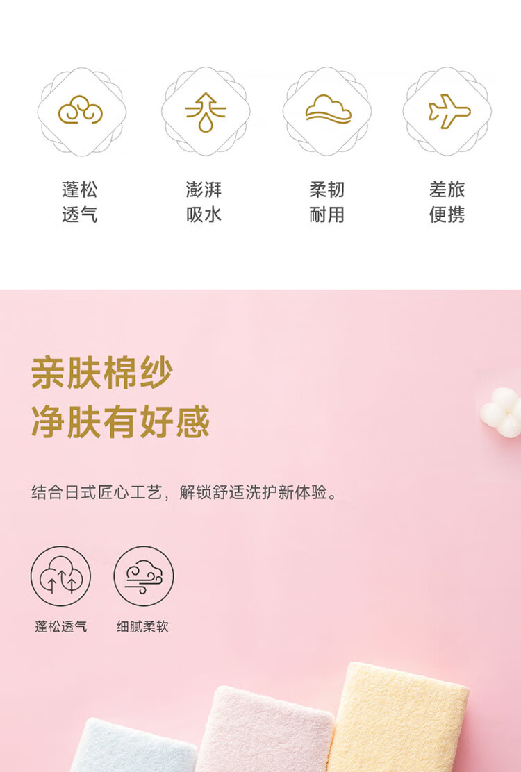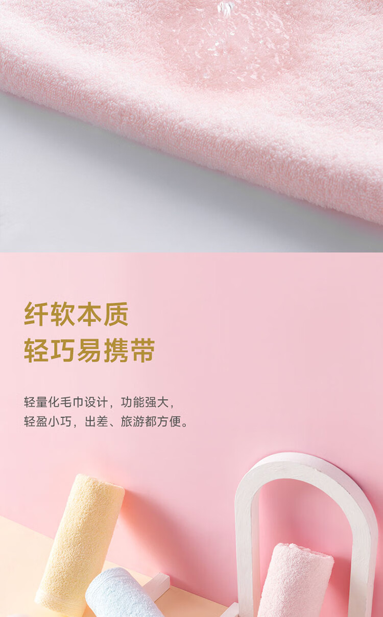 蓬松透气,细腻柔软,柔韧耐用;;精梳棉圏强劲秒速吸,清爽擦拭;轻量化毛巾设计,功能强大轻盈小巧