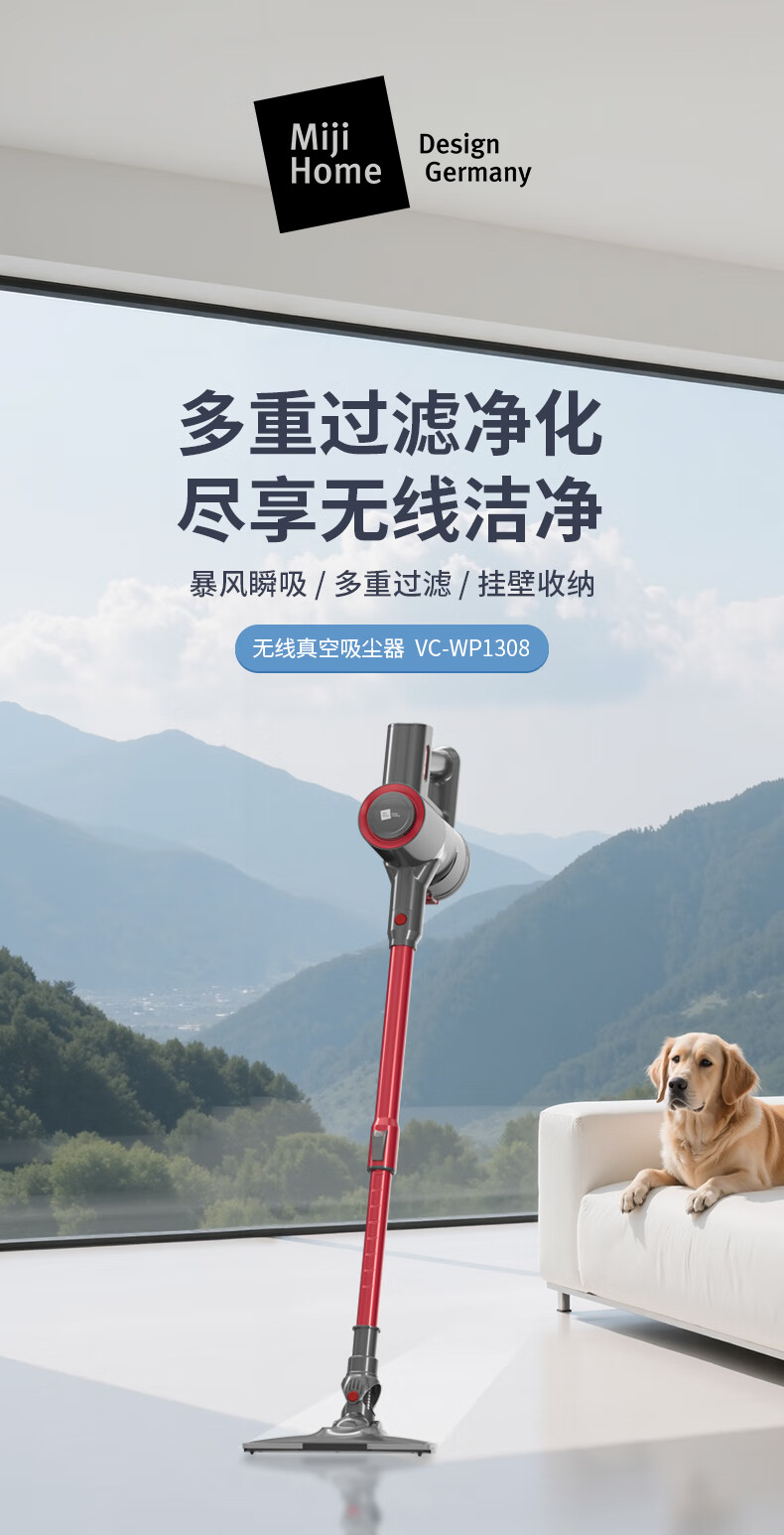 无线手持,使用更自由,操作更便捷;多重过滤净化,层层过滤灰尘和有害物质;两档档位调节,配合多种吸头,清洁更全面