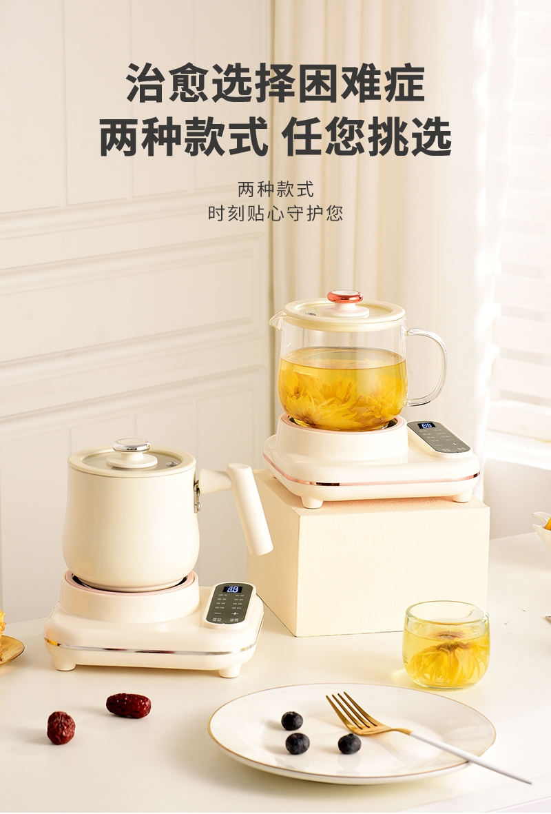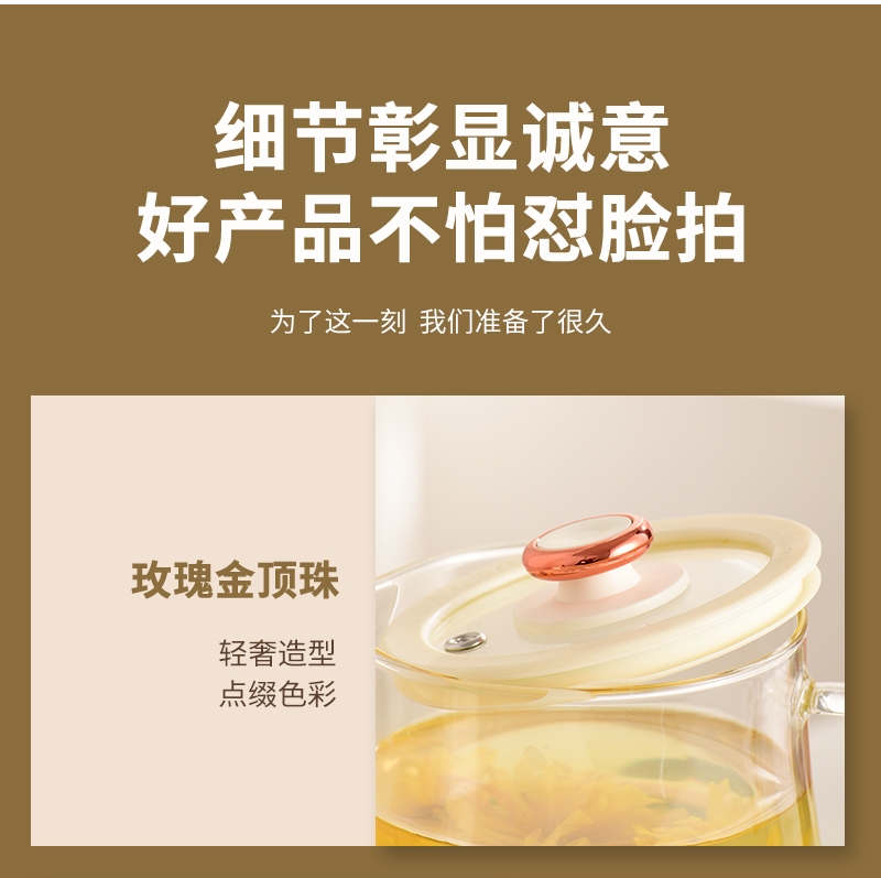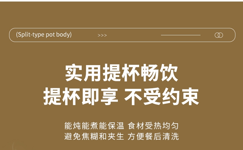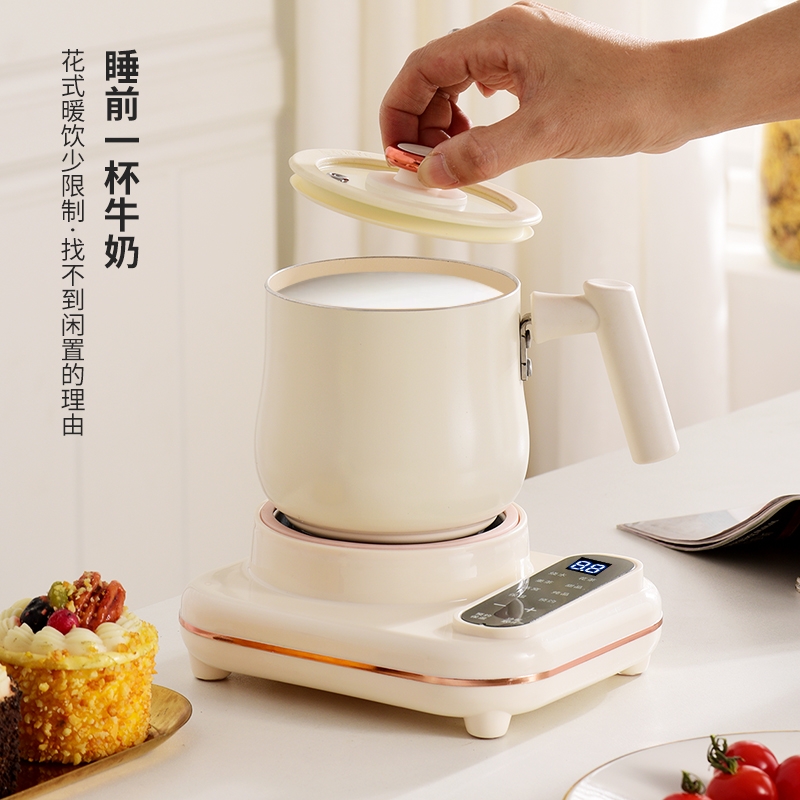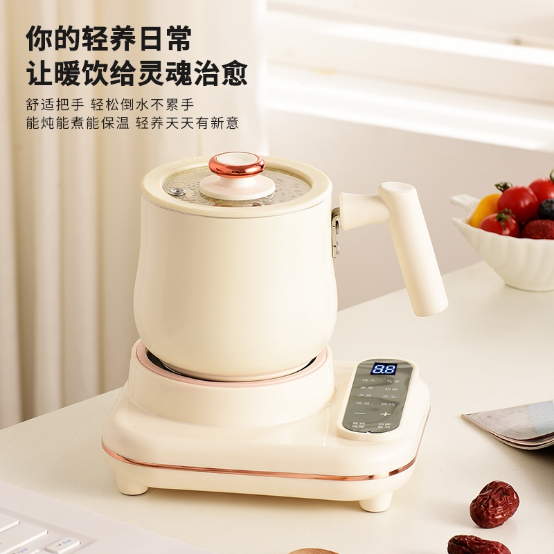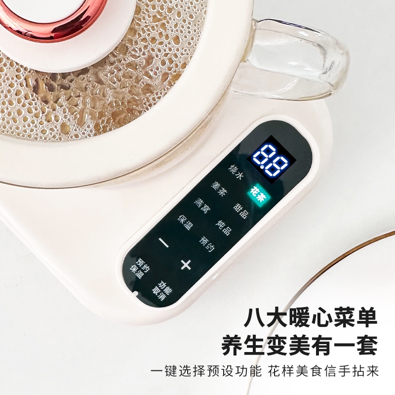 600ml精巧容量,私享大满足;智能触摸控制,8大暖心菜单;30dB低噪纯煮,工作时也不惊扰;24小时智能预约,8小时长效保温;分体设计,清洗方便