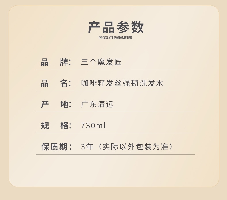 三个魔发匠 咖啡籽发丝强韧洗发水XYR-CP-1764