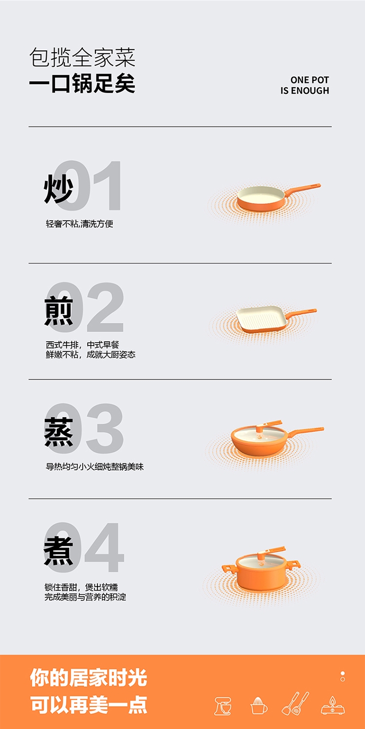 瓷釉质感,色彩丰富,可直接上桌保温,提升厨房与餐桌;耐受酱油、醋、番茄酱等调味品,不易变色 / 腐蚀;陶瓷 / 复合底设计,升温稳、保温好,适合慢炖锁汁
