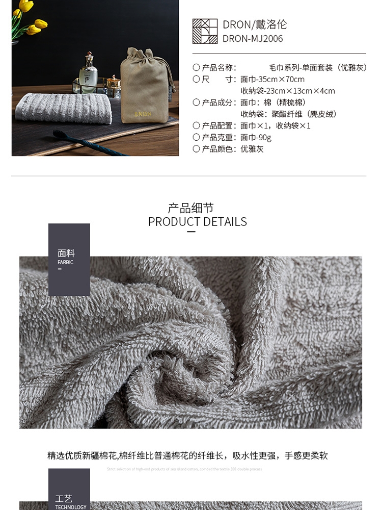 戴洛伦 纯棉柔软强吸水洗脸巾毛巾DRON-MJ2006