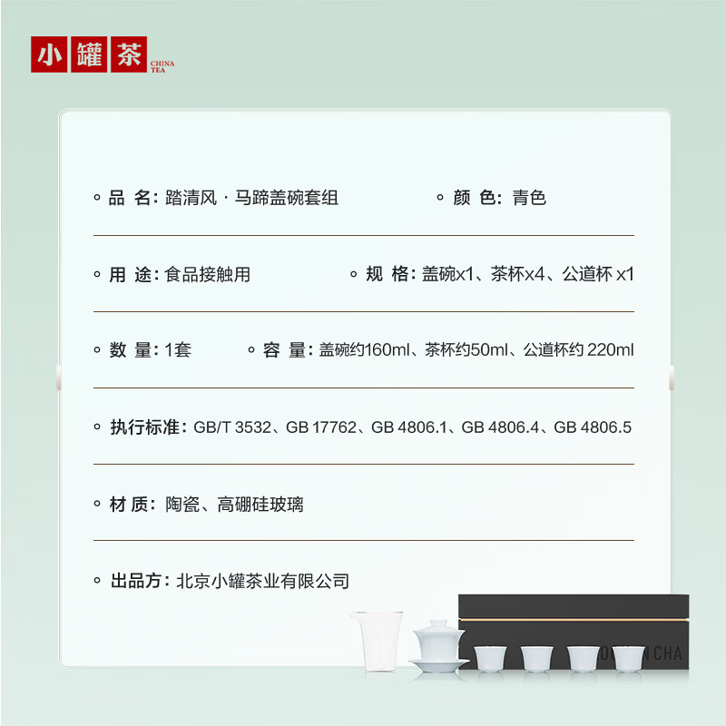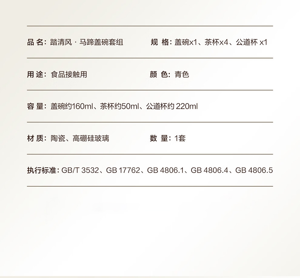 容量:盖碗约160m1、茶杯约50ml、公道杯约 220ml
