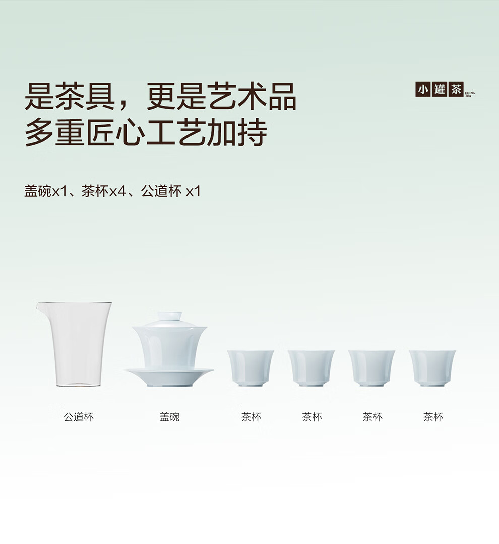 配置:盖碗x1、茶杯x4、公道杯 x1