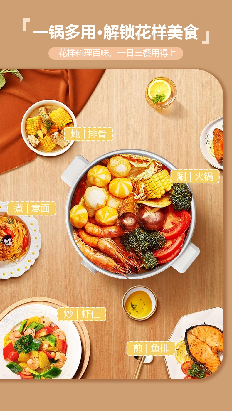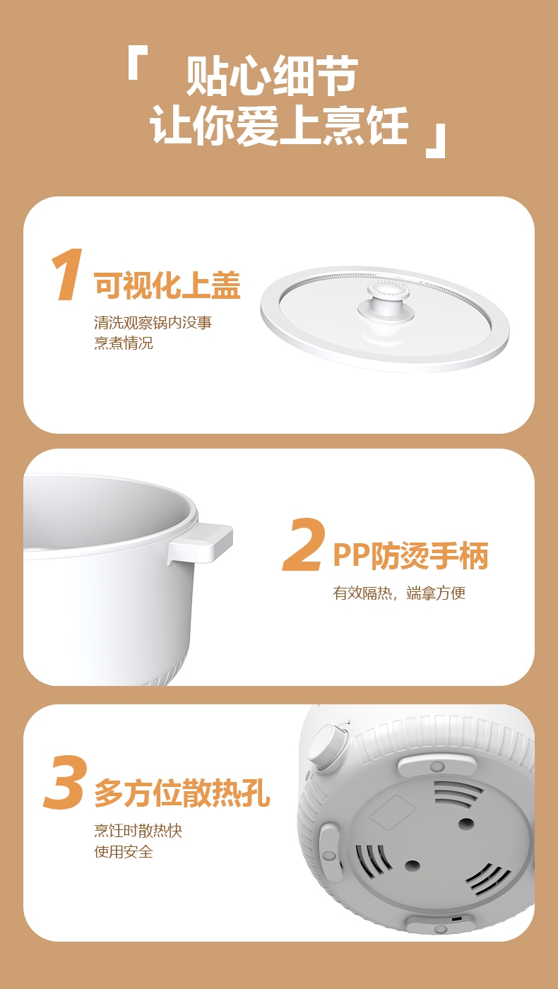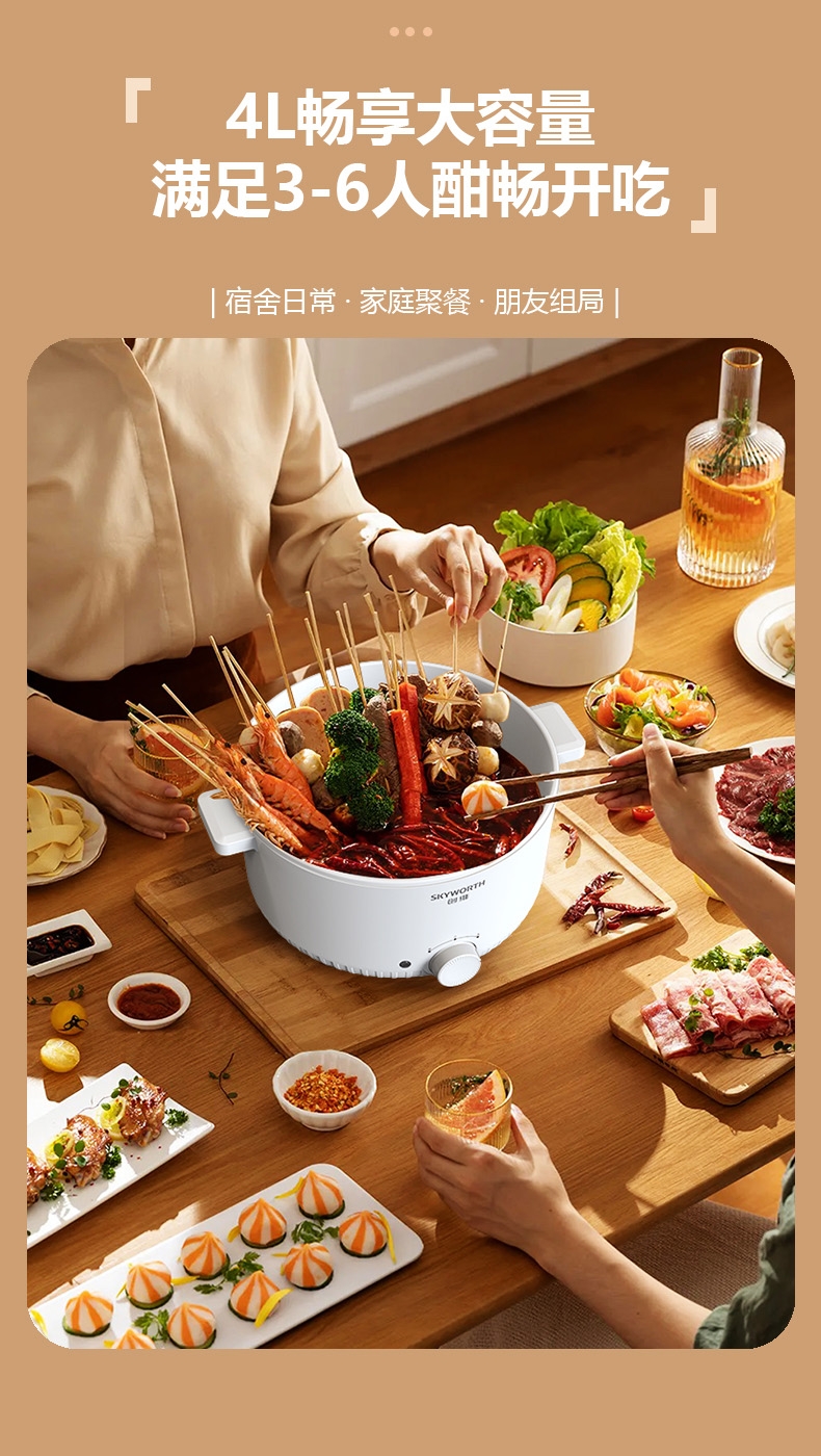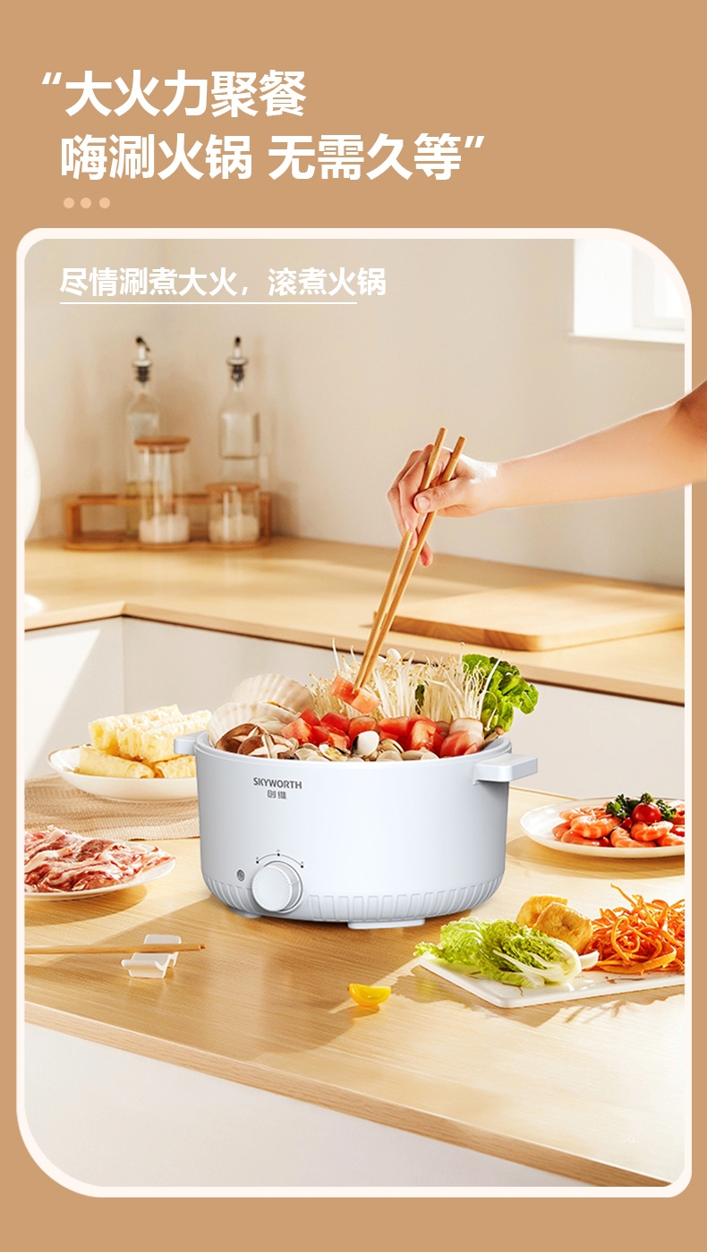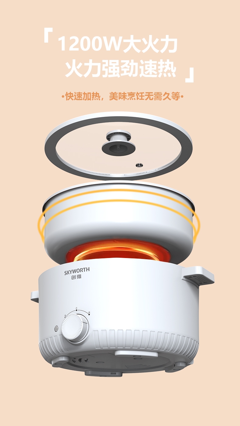 三档火力旋钮式直达美味,可随意切换;发热体采用360°整圈发热嗨涮火锅不久等;三层锅体结构聚能锁热防烫手,防烫 隔热 锁热