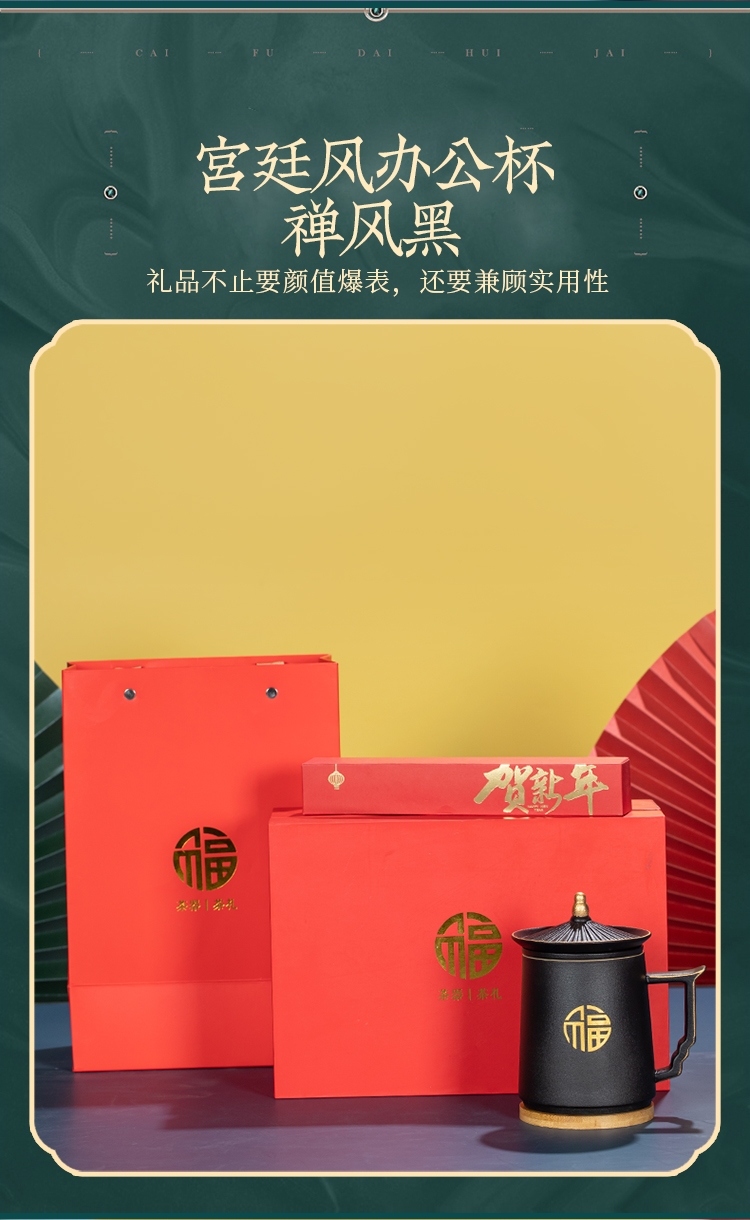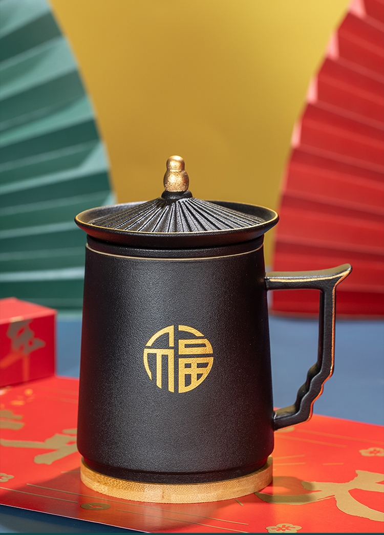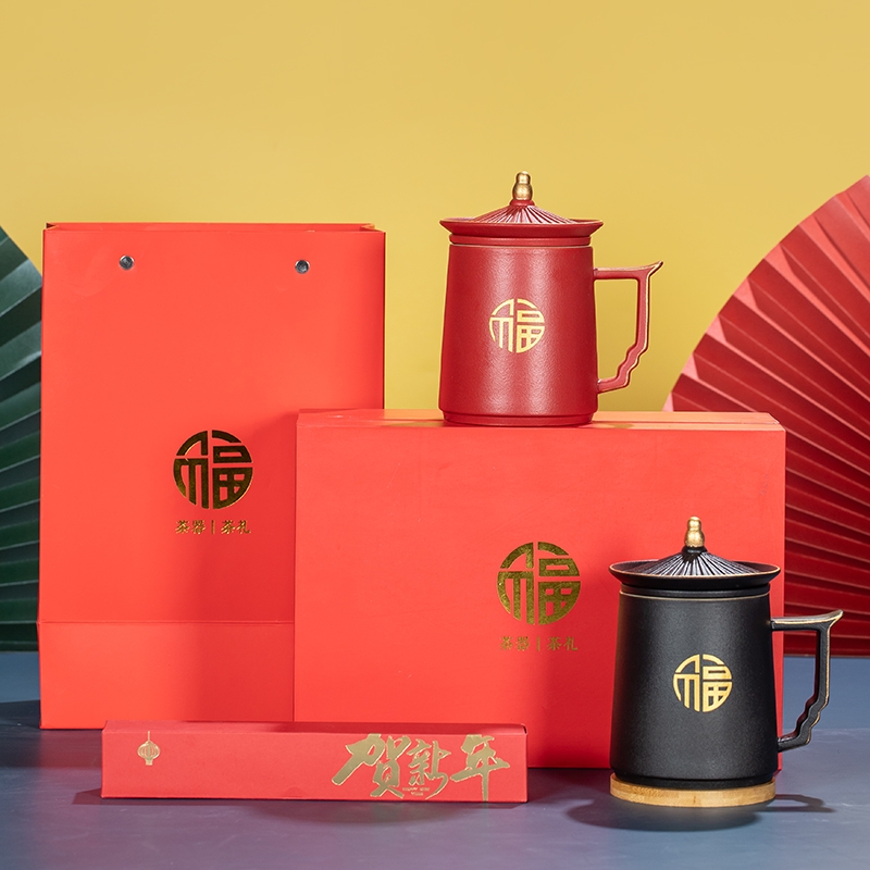 燚器 陶瓷马克水杯春节黑陶公司年会礼