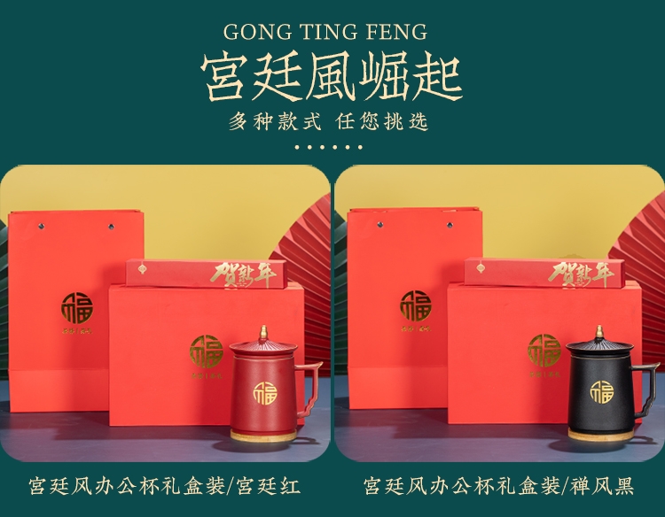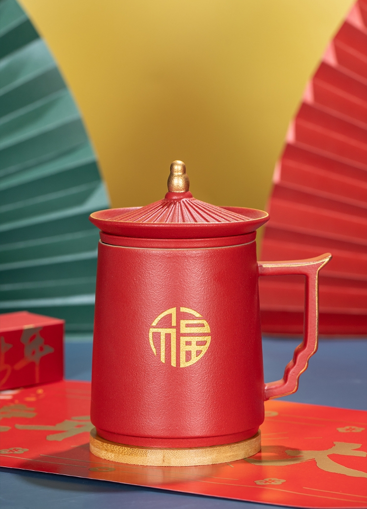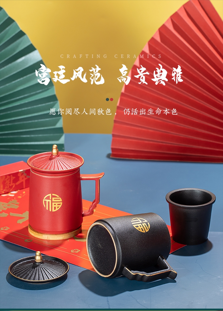 国潮陶瓷办公杯;仿古屋檐 金线描边;精美礼盒