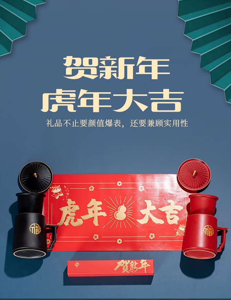 配置清单:水杯三件套*1 杯垫*1 春联*1 礼盒手提袋*1