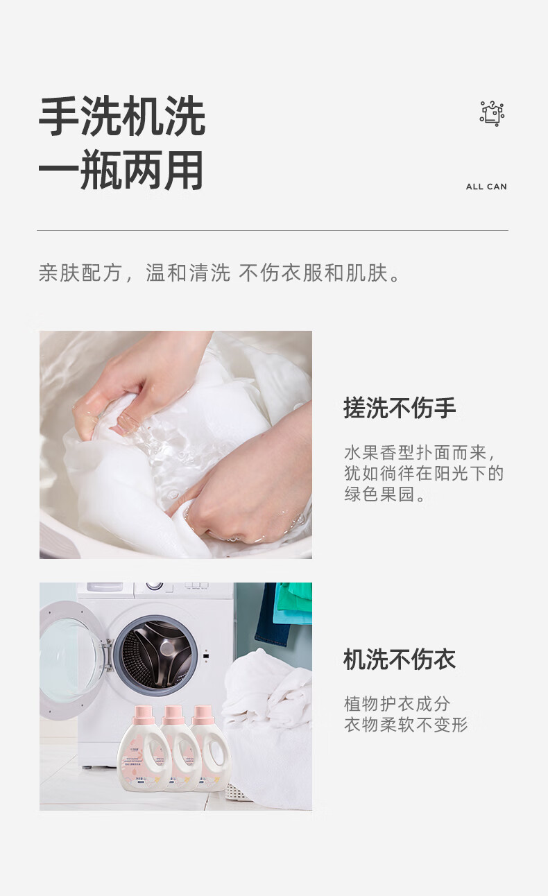 柔顺护衣;天然洁净;手洗温和不紧绷
