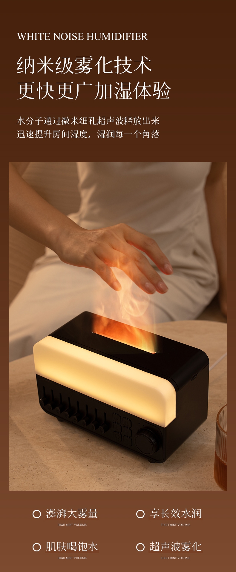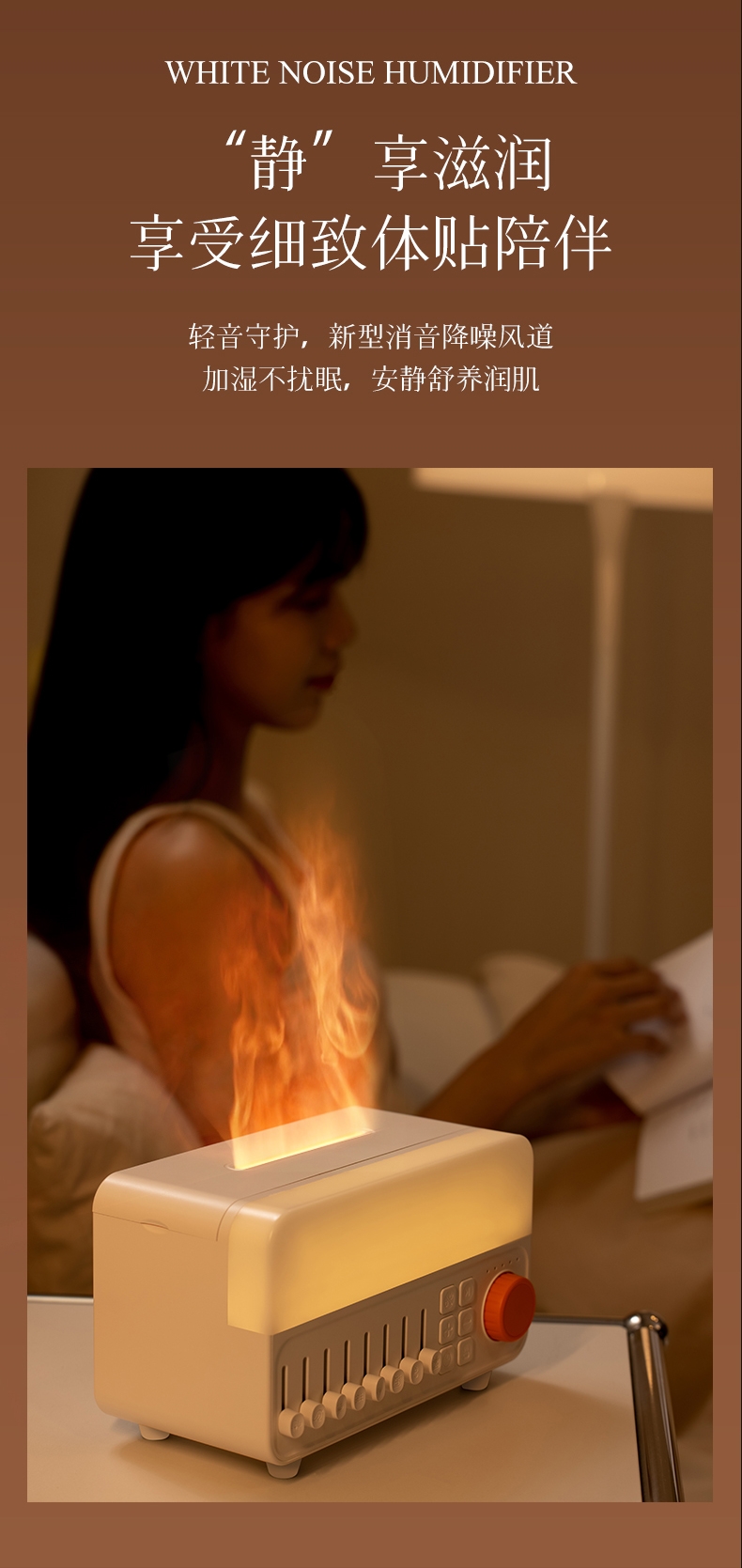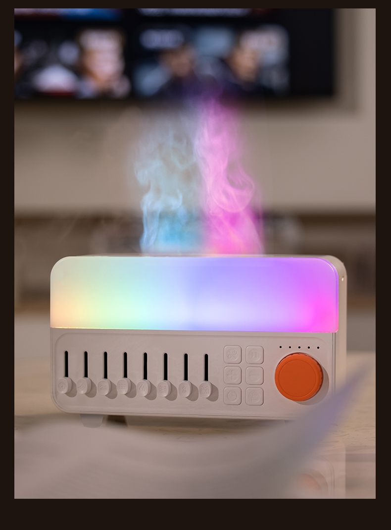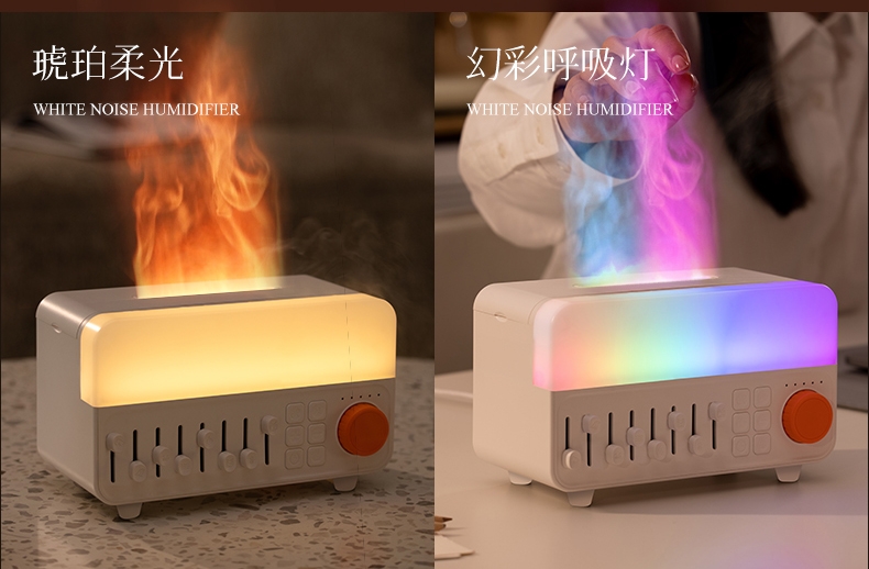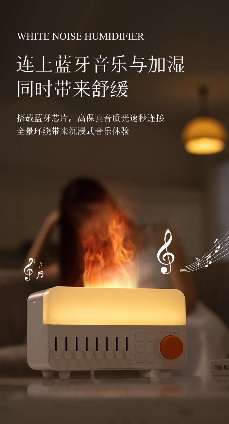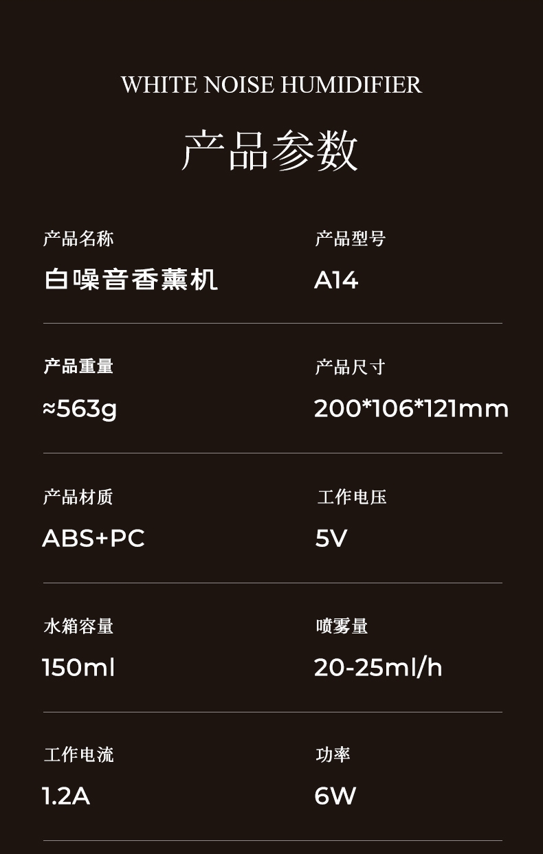大雾亮加湿+七彩呼吸氛围灯+白噪音助眠;两档调节,1/2/3/4/5小时定时;静音降噪,加湿不扰眠