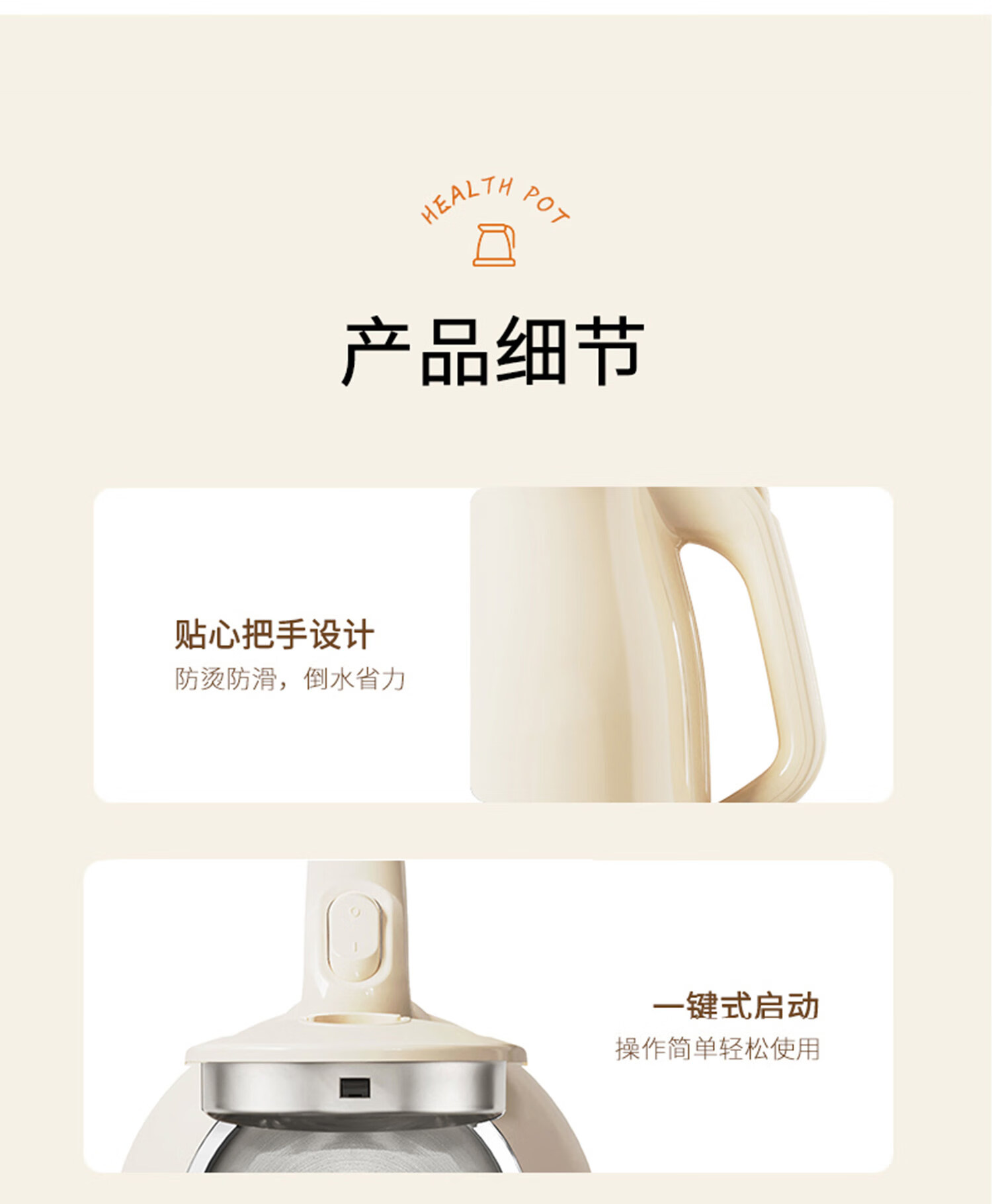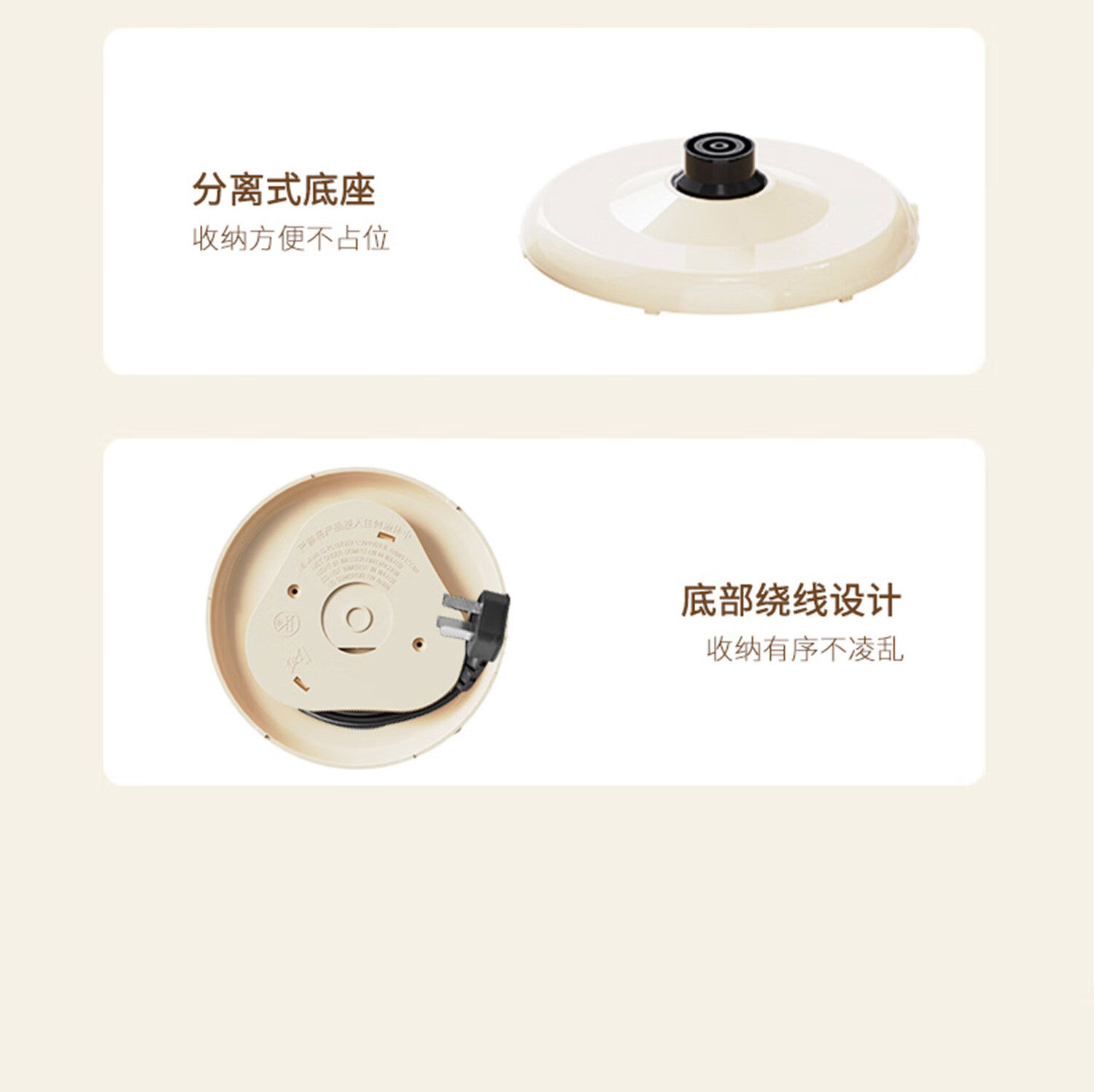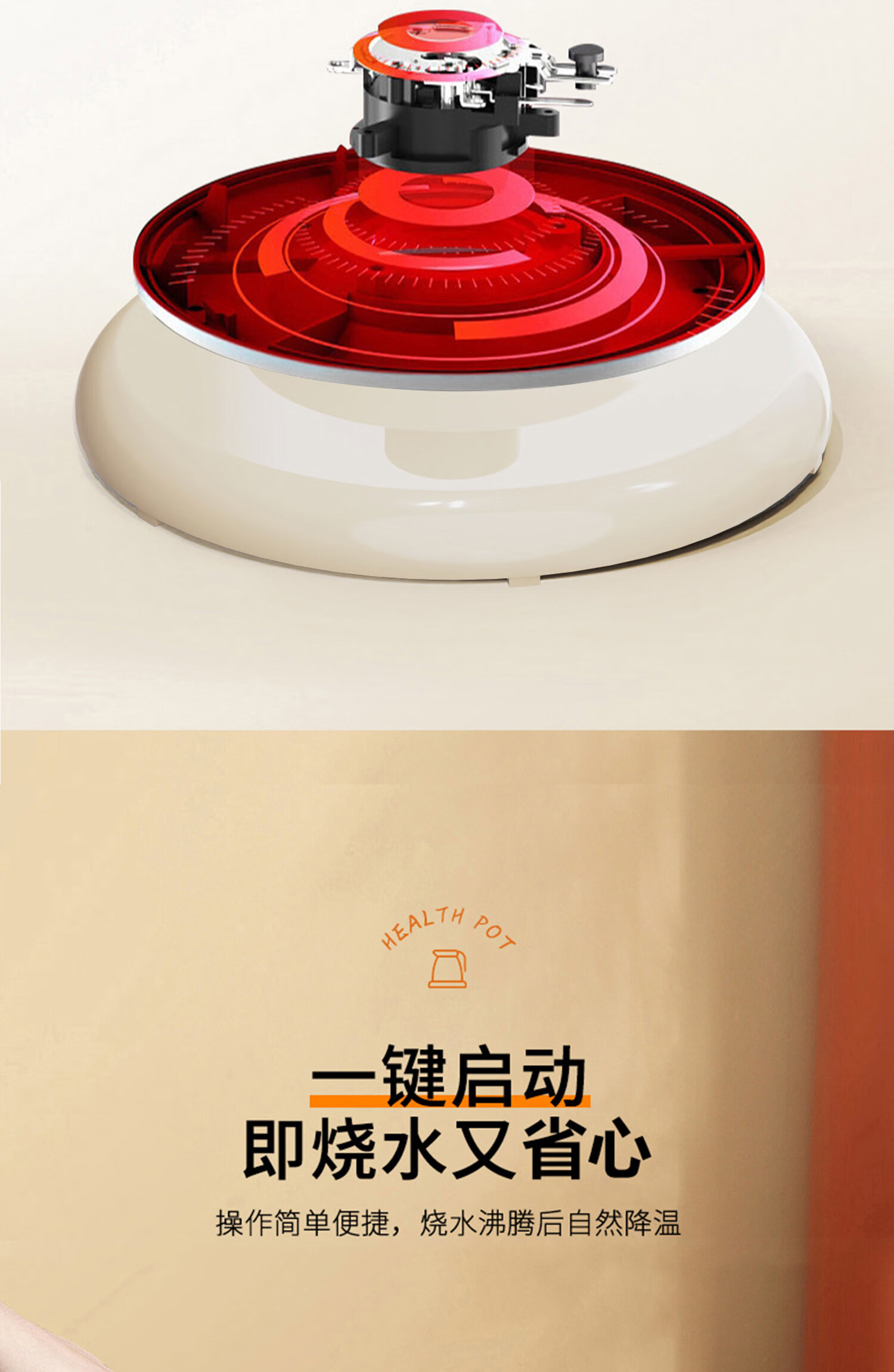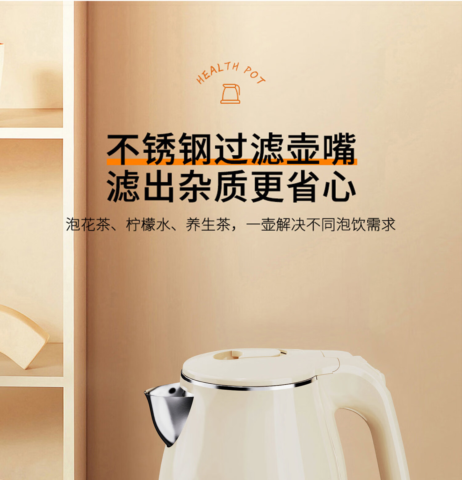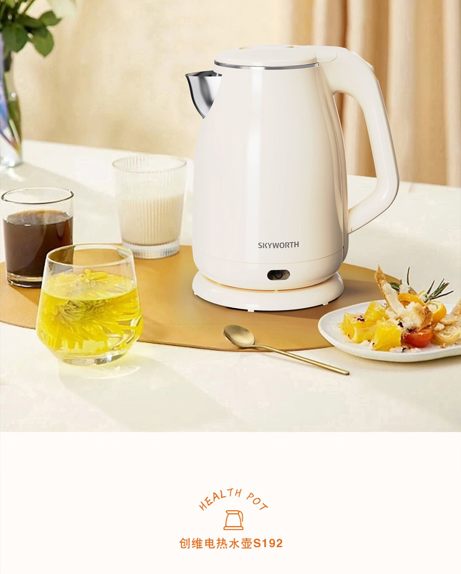 304不锈钢材质,用心选材;1500W大功率,快速沸腾,即烧即饮;双层防烫机身,保温不烫手