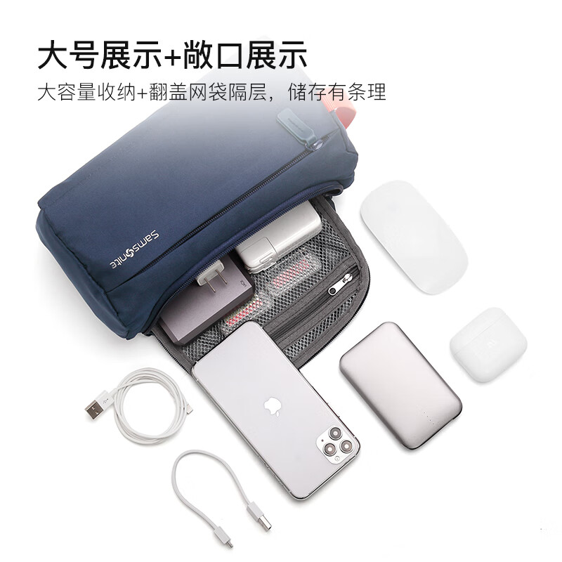 织带提手,方便携带;内部结构,分区合理 ;立体剪裁的空间收纳设计,冷暖色的时尚搭配