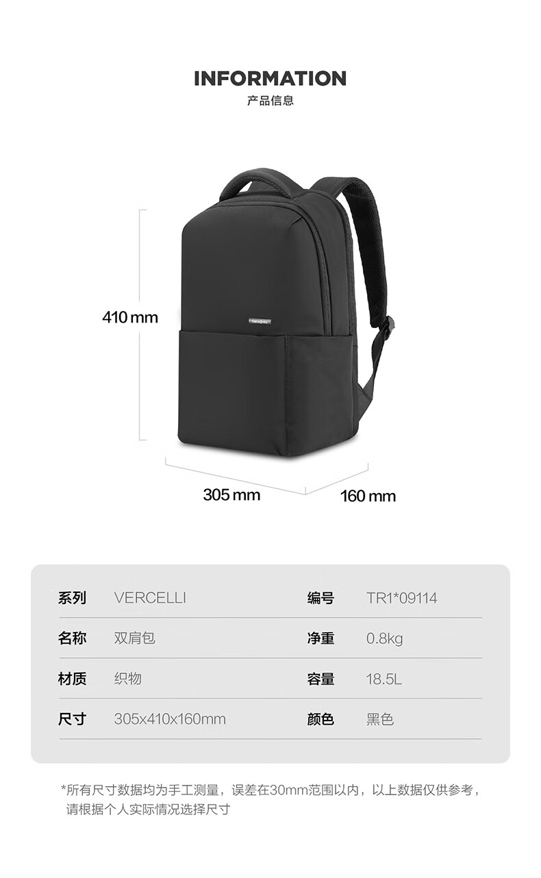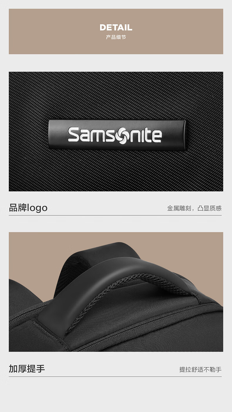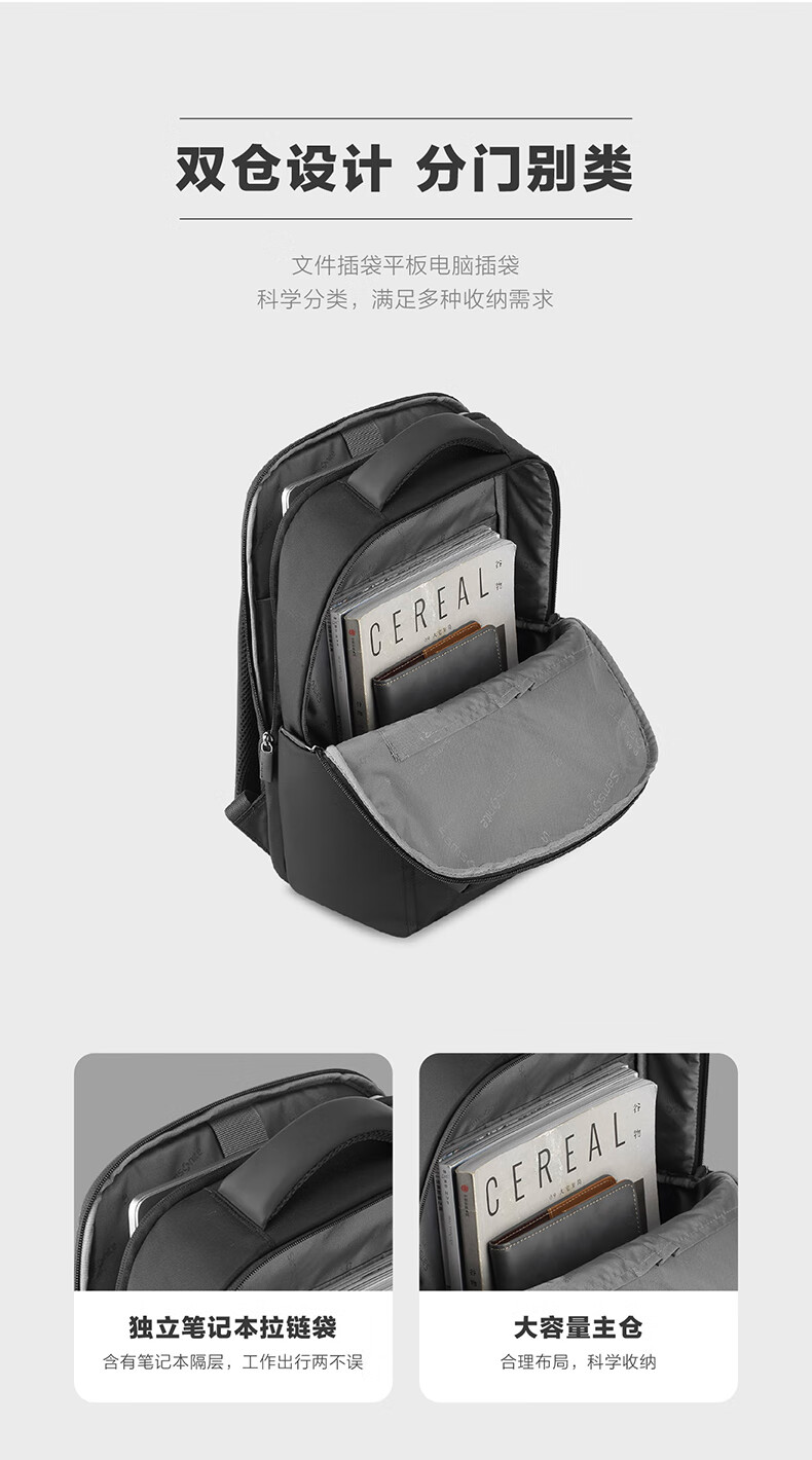 背面拉杆挂套,方便外出时同拉杆箱一起使用;大开口生活仓、平板电脑插袋、文组插袋;加厚提手,舒适减压;附织带挂环