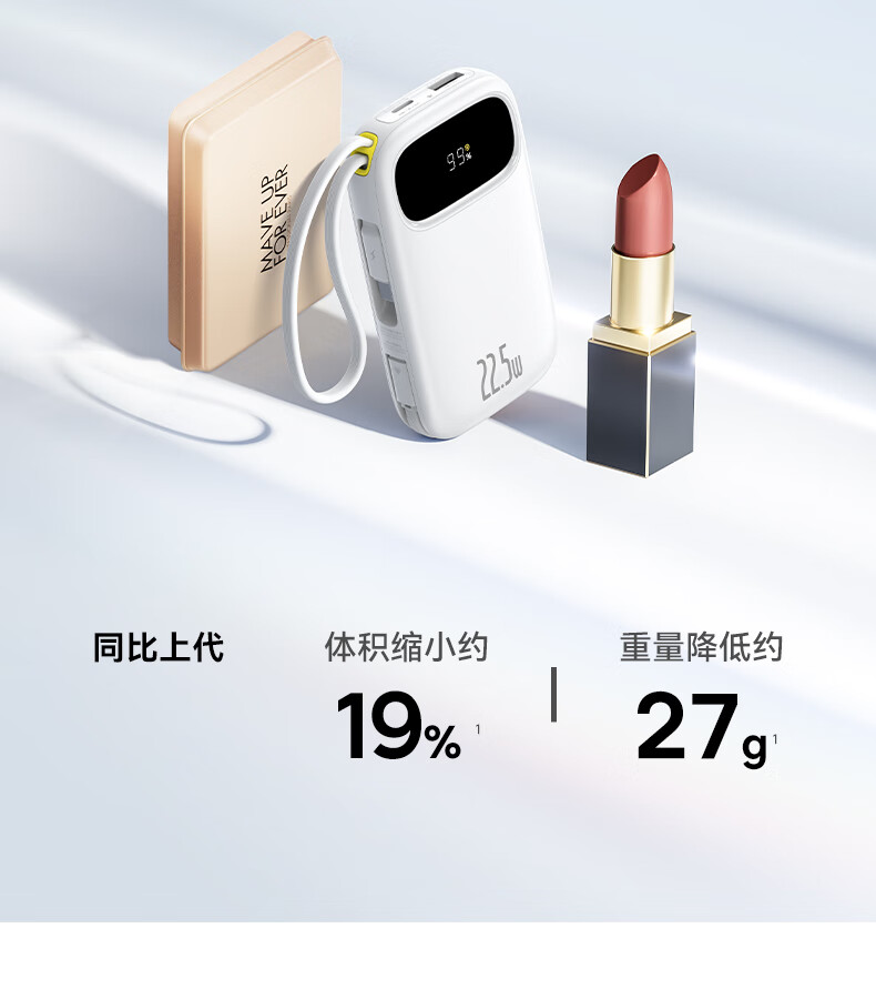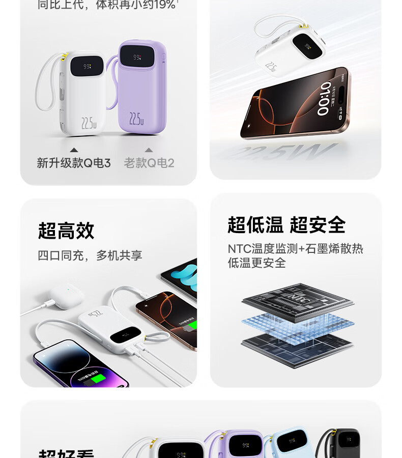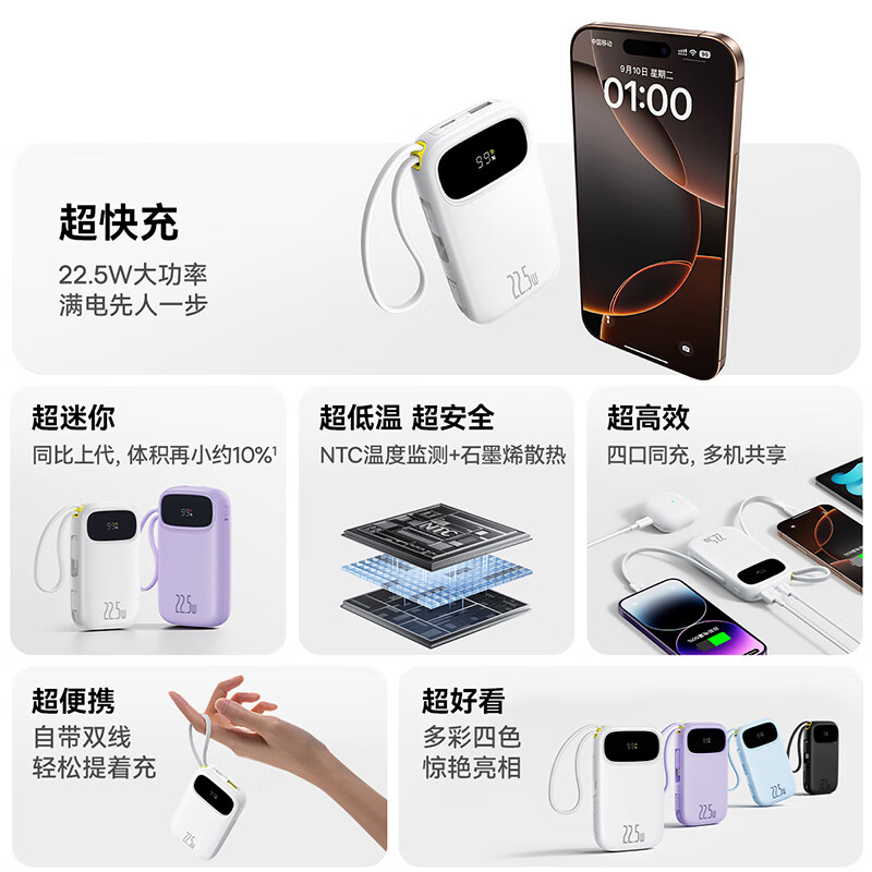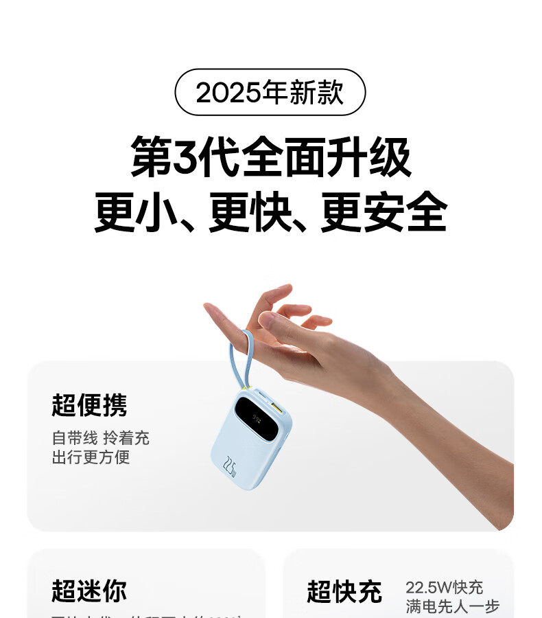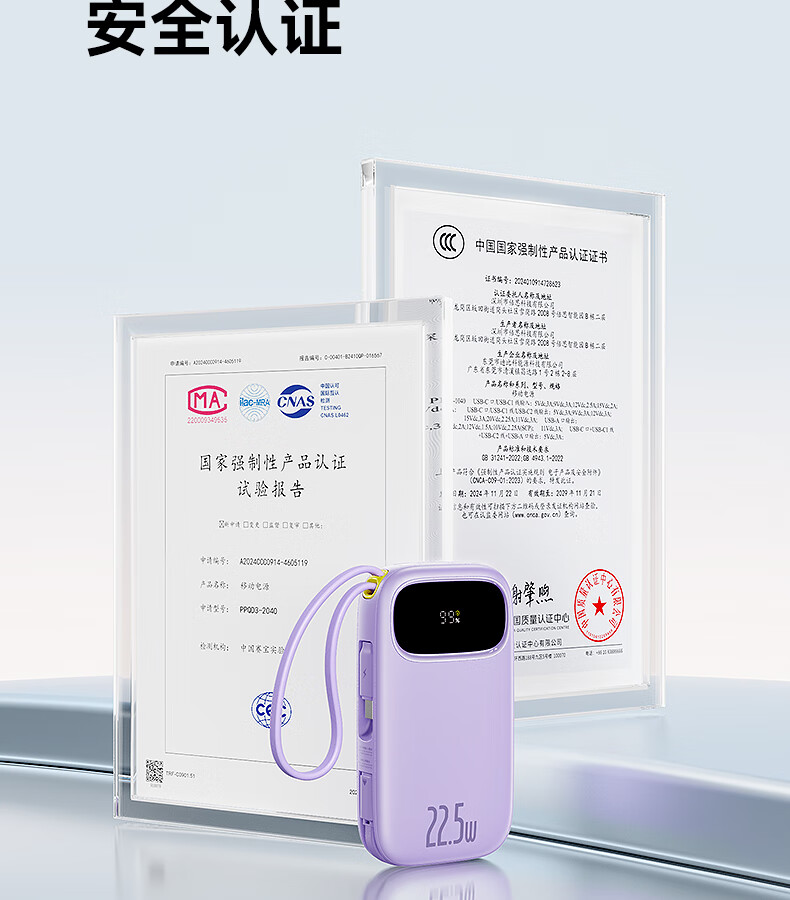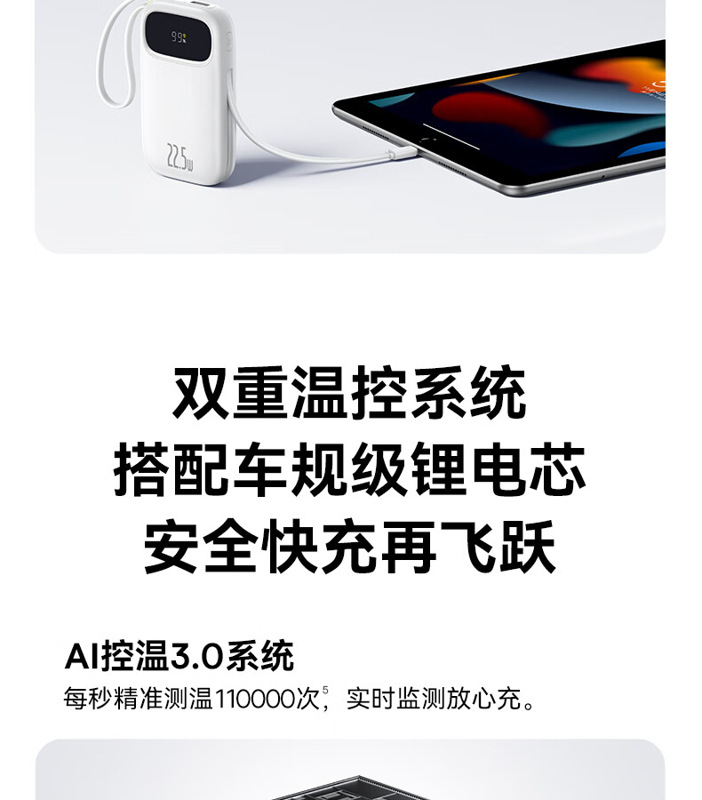 22.5W电力全开 苹果安卓双快充;开创手提式充电新体验 边拎边充超方便;高弹TPE线材5000+次 随意弯折不断裂