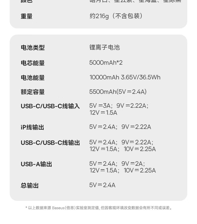 电池容量:10000mAh